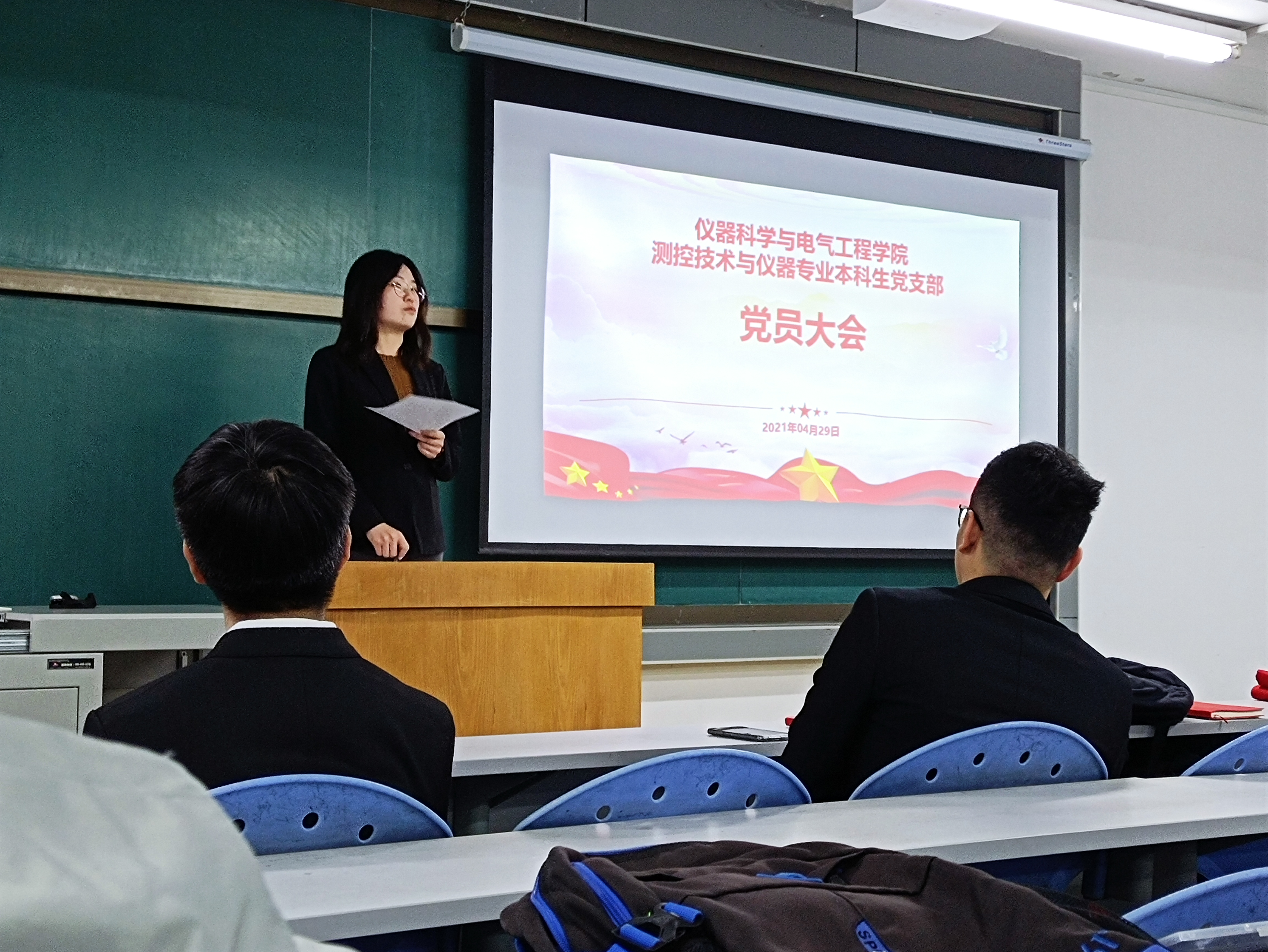 测控技术与仪器专业本科生党支部组织全体学生党员集体学习习近平总书记在清华大学考察时的重要讲话。活动由支部书记马姗姗老师主持。