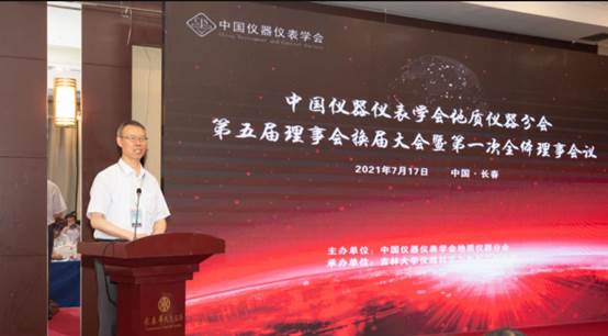 第五届中国仪器仪表学会地质仪器分会换届会议首先由嵇艳鞠教授向各位参会代表报告了换届筹备工作情况,然后由各位参会会员选举产生了第五届理事会理事,并由中国地质装备集团有限公司党委副书记卢元林宣布了选举结果。