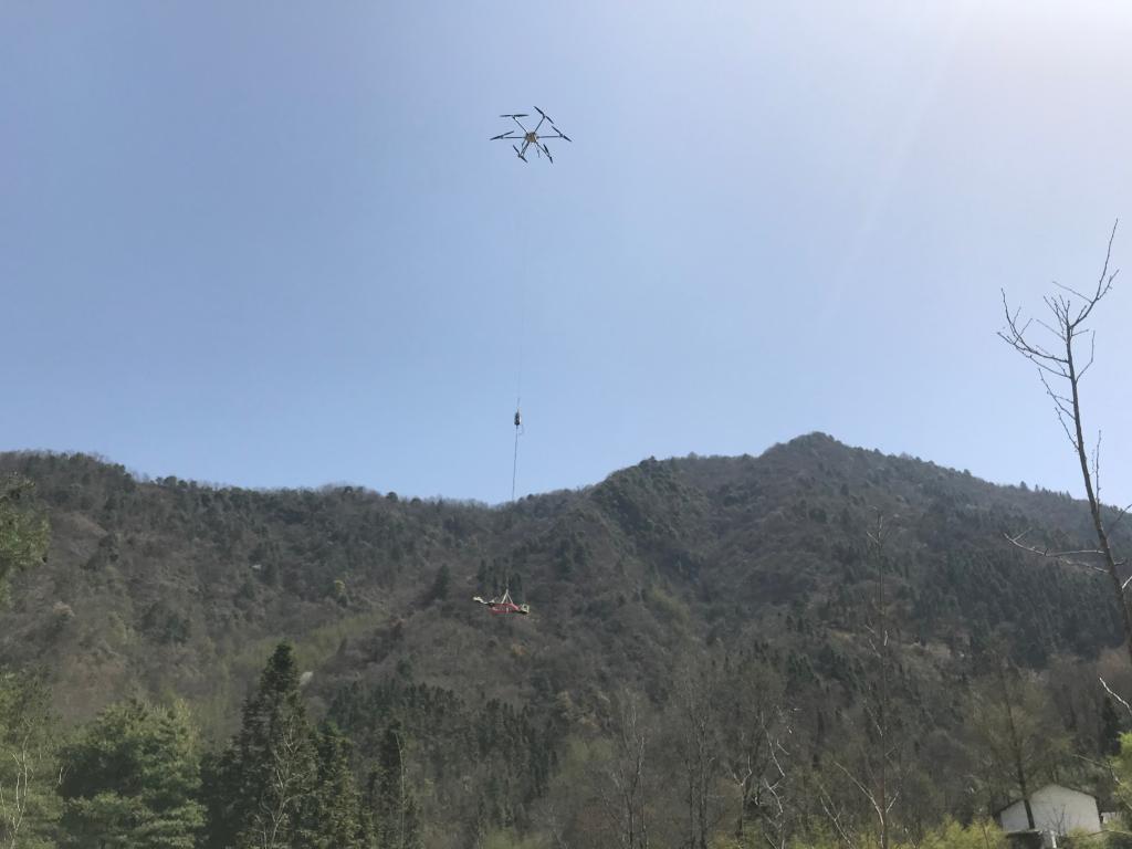 西渝高铁是国家《中长期铁路网规划》“八纵八横”高铁网络中包(银)海通道和京昆通道的重要组成部分,是陕西省西安市到重庆市的高速铁路客运专线,西渝高铁由西安经万州至重庆,设西安、安康、城口、万州、涪陵、重庆等12个站点,线路全长约538公里。沿途穿过很多山区,至今不通铁路,仅有高速公路与外界联通,十分封闭,属于国家重点扶贫区域。受中国中铁二院工程集团有限责任公司委托,我院林君院士地空电磁探测团队于生宝教授、刘长胜教授、周海根副教授、滕飞高级工程师及其研究生赴重庆市城口县,应用大载重长航时油电混合动力旋翼无人机飞行平台,搭载最新研发的三分量传感器,实现了复杂山区高效探测。此次的探测线路多涉及海拔1500m以上的高山峡谷区,地表最大高度差1200多米,植被茂密,是典型的地面方法难进区,地面大部分物探资料空缺。为了保质保量完成工作任务,团队成员每天行进在崎岖险峻的山路、躲过高空落石、攀过十里大山,风餐露宿克服重重困难,利用自主研发的地空时频电磁探地装备,实现了“难进入区”深部和盲区的地电结构勘查,探明了重庆市城口县至陕西省安康市多段隧道线路的地下结构,取得了宝贵的电磁物探资料。