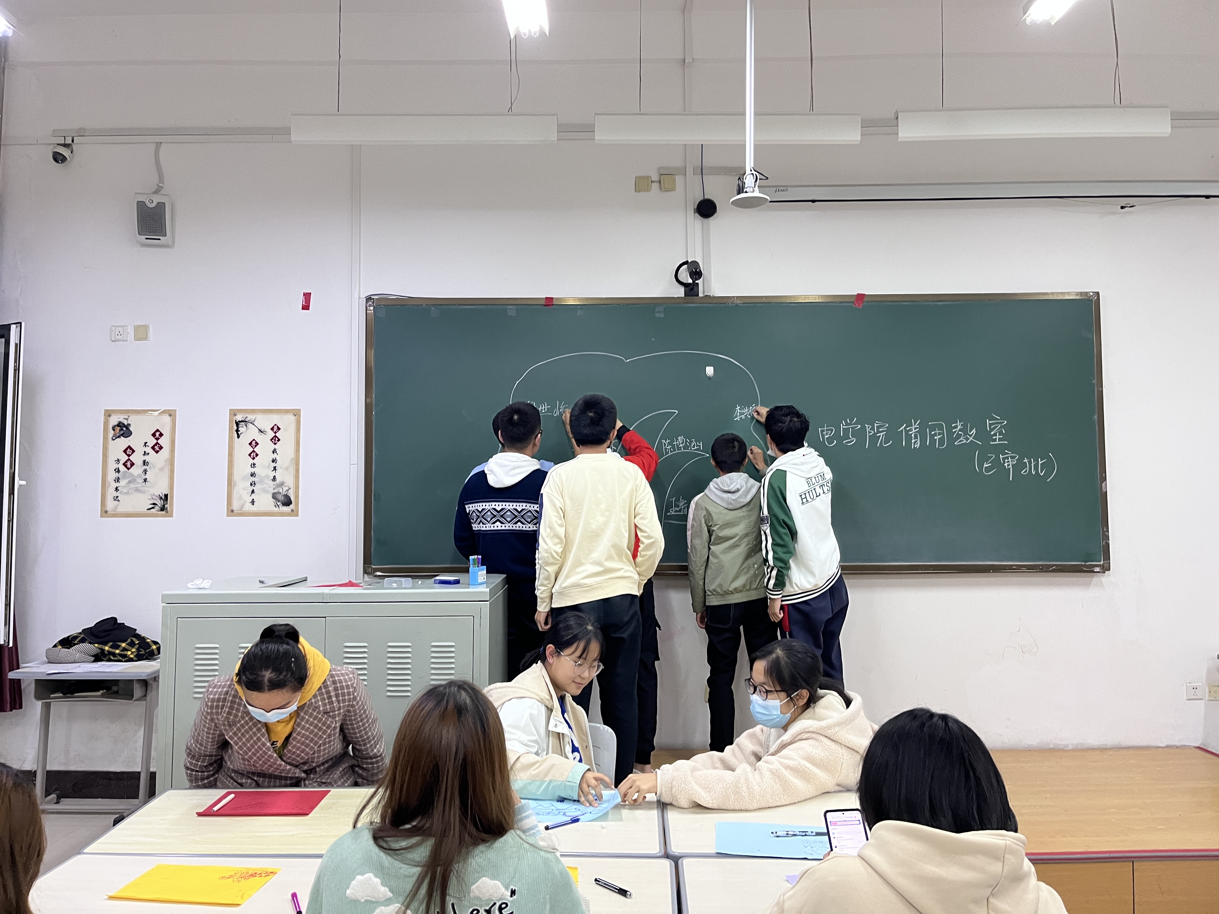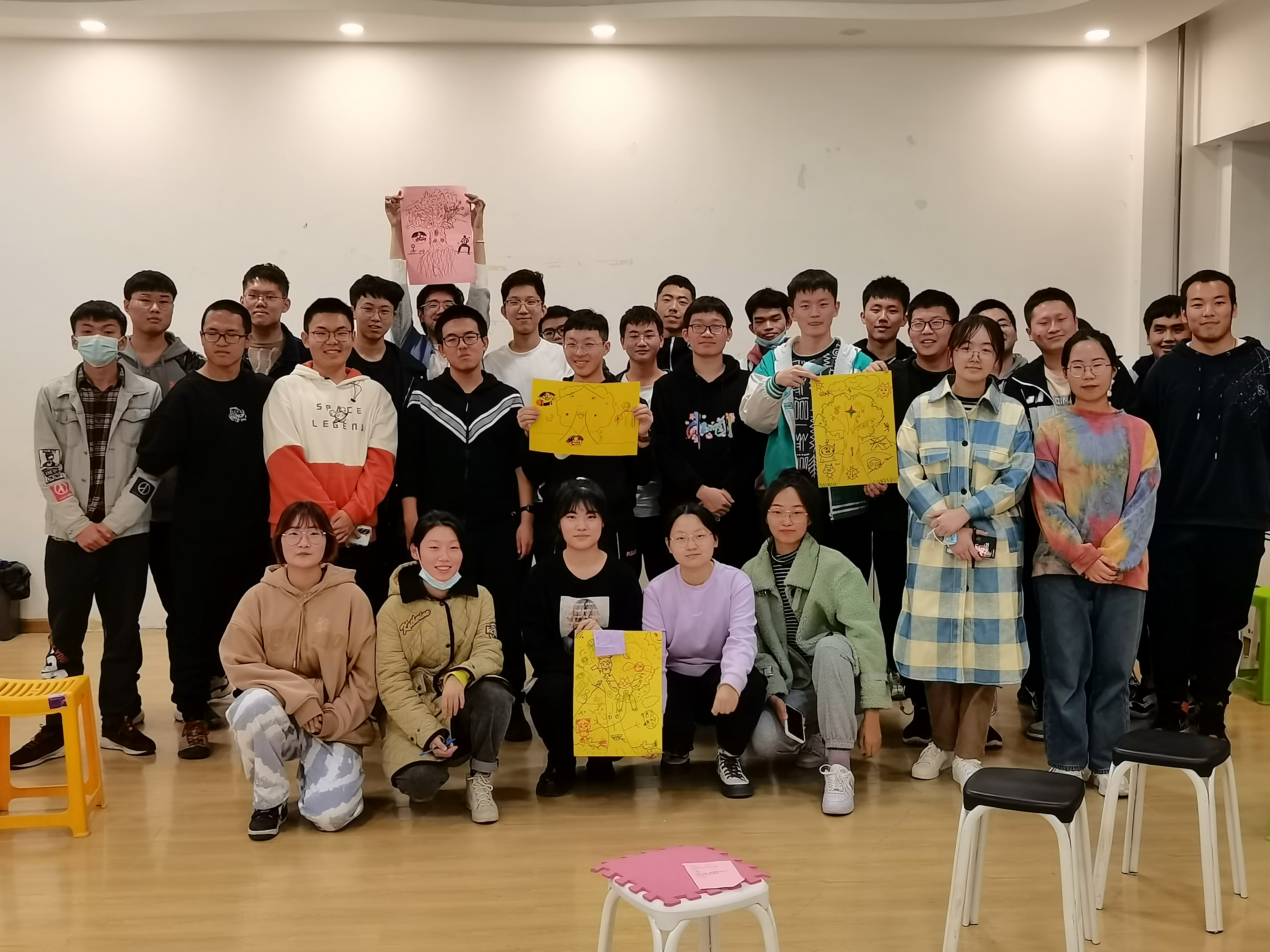 2022级各班心理委员主持、学生服务部志愿者辅助完成,2022级全体新生参与。本次活动分为三个阶段:首先,大家以热烈的掌声欢迎2022级同学们的参与,祝贺他们进入人生新阶段,并邀请他们畅谈自己对未来大学生活的预想。分组后,同学们进行“我知道”活动,围绕着“我的家乡”,“兴趣爱好”,“名字含义”等主题开展热烈讨论。接下来是“人体字母”活动,由每组成员合作,用身体摆出单词,欢声笑语中,“love”,“come”等字母出现在大家眼前。随后“集体登陆”, “快乐传递”等游戏陆续开展。其中,在“信心启迪”活动中,同学们在纸上写下自己最想做的三件事,以此明确自己的目标并以此为行动的动力来,作为大学里的第一份礼物。活动最后,每组同学合作绘制一幅《团体树》,大家合力合作,展开想象。