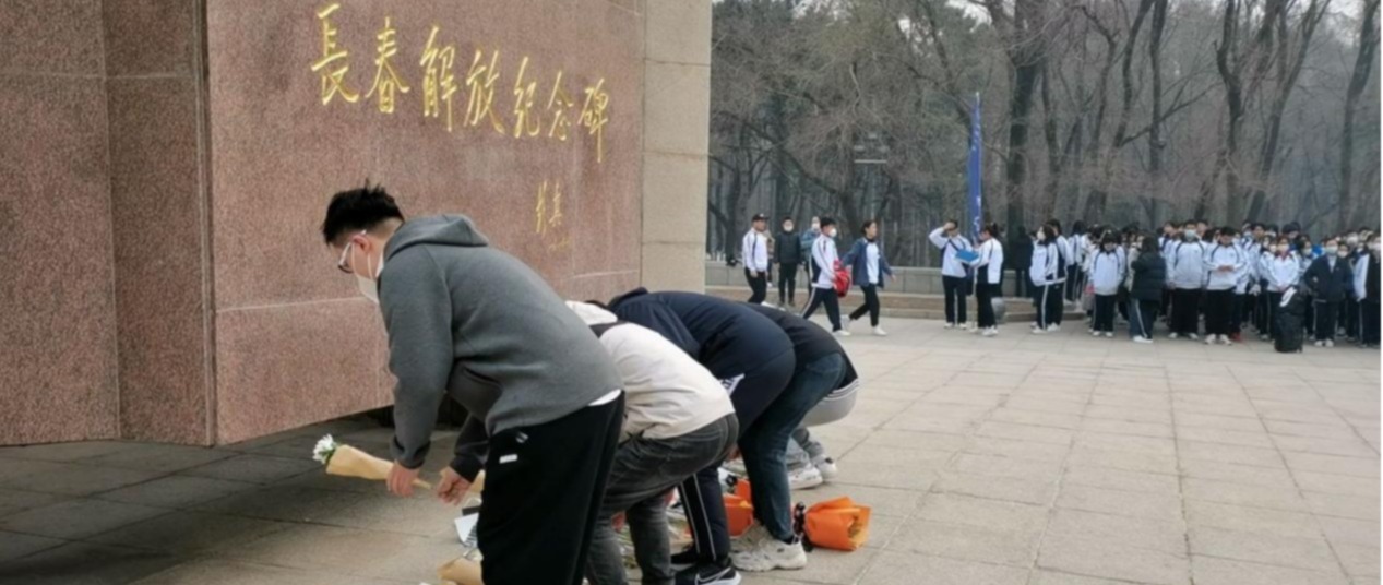 活动伊始,学院团委负责人孙鹏博老师进行讲话,鼓励同学们要擦亮红色底色,传承红色基因,赓续红色血脉,从革命先烈的英雄事迹中汲取奋进的力量。随后,学院团委副书记王俊博同学介绍了长春解放纪念碑的历史由来。讲话结束后,全体人员庄严肃立,集体默哀三分钟,缅怀先烈。默哀结束后学生代表依次上前献花鞠躬。最后,全体同学在解放碑前重温入团誓词,初心不改,对革命先烈表达最崇高的敬意。