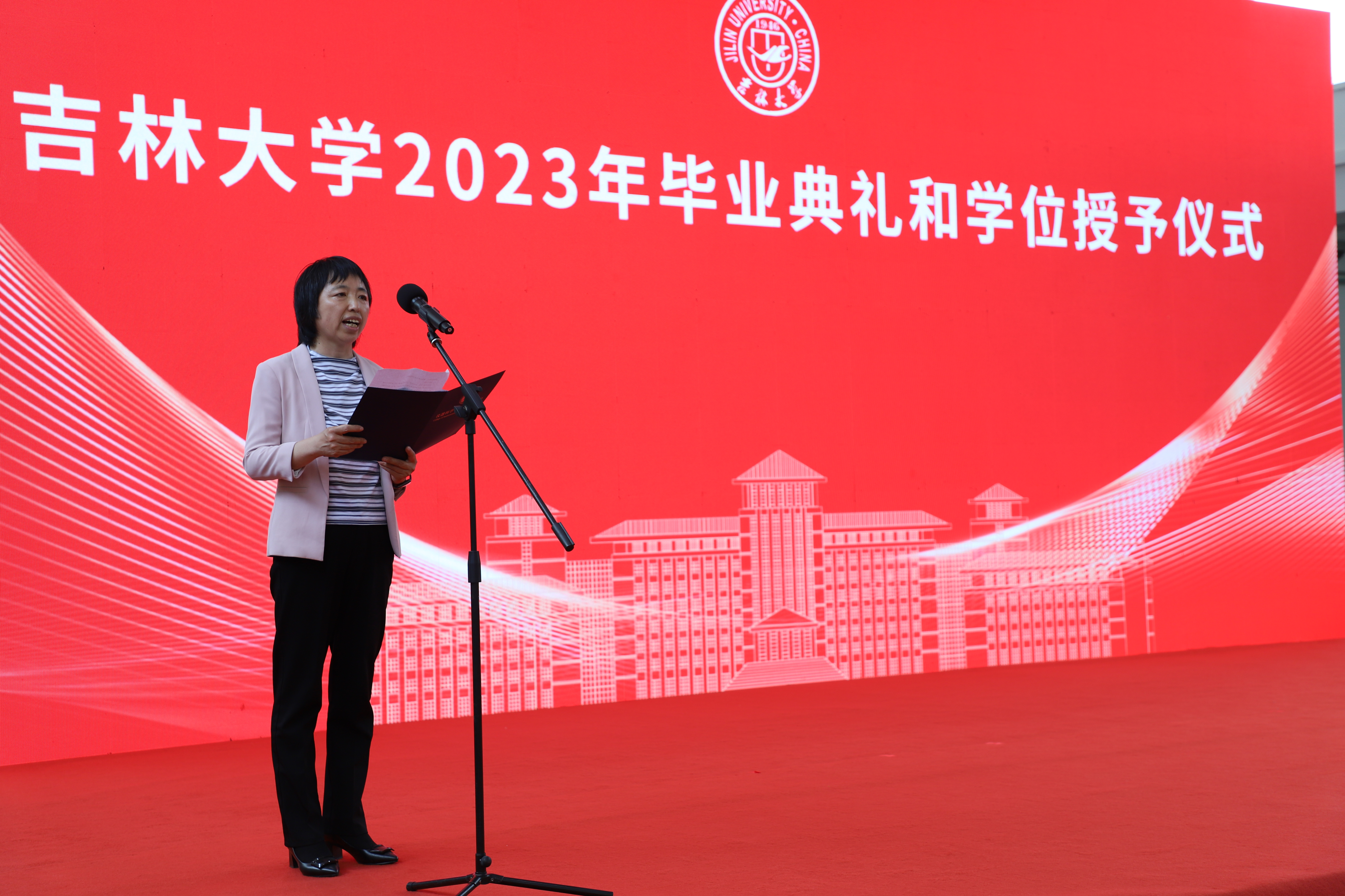 最后,院长嵇艳鞠教授致辞,她对返回母校参加典礼的往届毕业生和远道而来的家长表示热烈的欢迎,对2023届全体毕业生顺利完成学业、即将踏上新征途表示衷心的祝贺,并向他们的父母和教师表达深深的敬意。在离别之际,她为即将踏入新征程的毕业同学提出四点希望:一是永葆一颗进取之心,脚踏实地,追求卓越;二是坚守一颗责任之心,甘于奉献,勇于担当;三是修炼一颗豁达之心,热爱生活,达观处事;四是常怀一颗感恩之心,心存大爱,饮水思源。嵇艳鞠院长深情寄语,母校永远是同学们的坚强后盾和心灵家园,祝全体毕业生前程似锦,平安幸福,创造出更精彩的篇章。