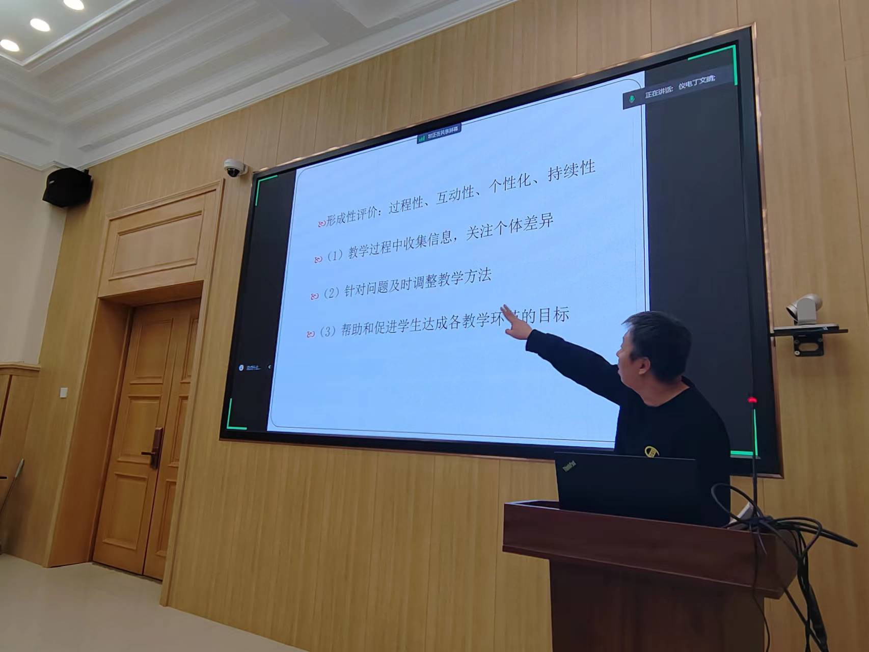 最后,副院长刘长胜作“审核评估与专业认证解读”报告,梳理了第一轮审核评估专家给出的建议和学院自查发现的问题,转达了2024年学校本科教育教学审核评估的有关要求,解读学院思政育人工作方案并介绍了学院课程思政的开展情况。