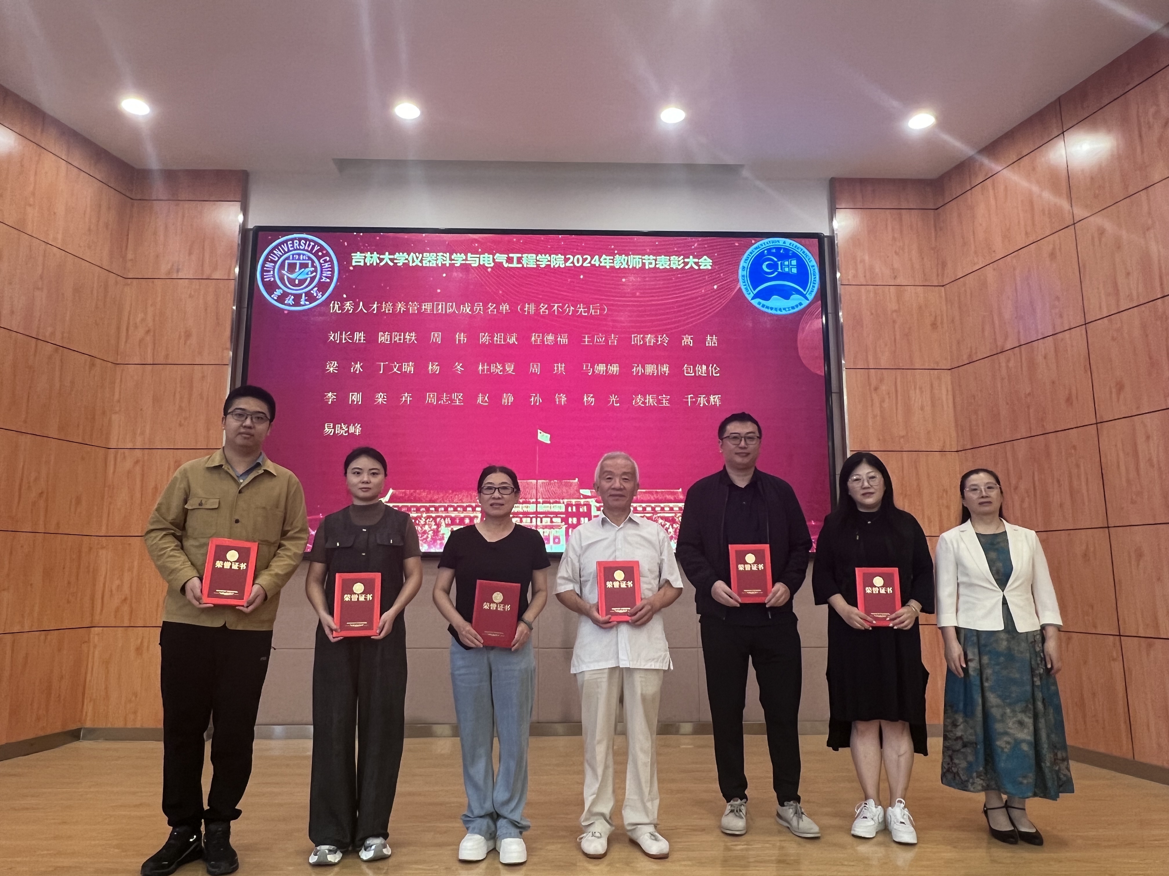 大会在庄严的国歌声中拉开序幕。会上,学院党委书记邱增凯代表学院领导班子向全院教师致以诚挚的节日问候。邱增凯表示,在过去的一年中,学院教师始终牢记立德树人根本任务,践行教育家精神,不断书写教书育人的新故事。随后,邱增凯宣读表彰决定。受表彰的教师中,有的潜心教书育人、高效赋能课堂,有的秉持科研初心、科研成果丰富,有的不断创新思路方法、持续提升教学水平,有的深耕专业、努力打造精品教材。院长嵇艳鞠为受表彰的教师代表颁发了荣誉证书,并与他们合影留念。
