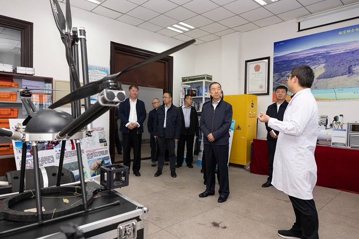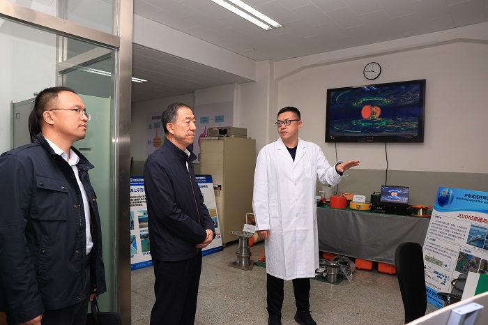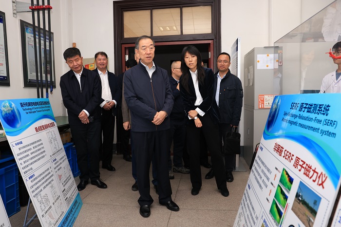 党委书记邱增凯、副院长林婷婷等陪同下参观了地球信息探测仪器教育部重点实验室,调研了学院自主研制的主动场磁共振探测仪、海洋电磁震源、超导全张量磁梯度测量系统、地震前兆气体光学检测设备、机载高分辨率电磁探测系统等,听取了我院研制的装备在复杂地质条件矿产资源勘察、水源性地质灾害隐患防治探测、电磁卫星地震前兆预测等方面的应用情况汇报。