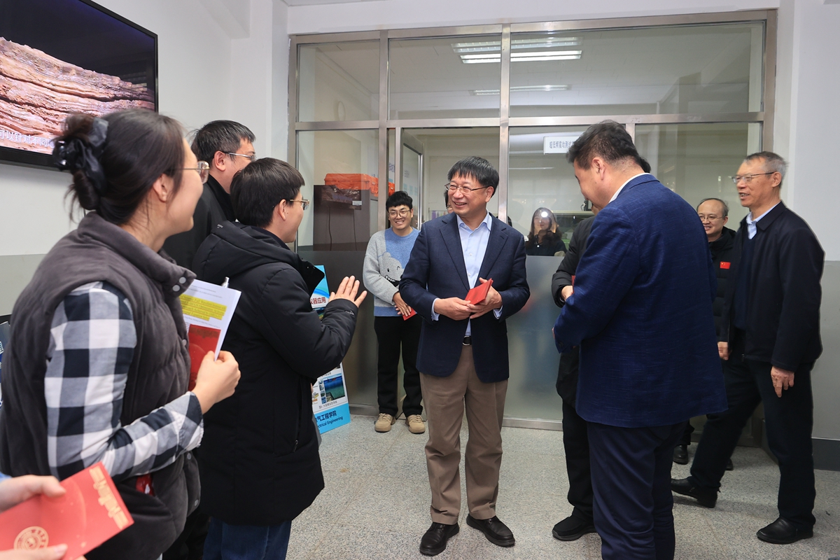 张希校长一行先后走进量子重磁传感器工艺与测试平台和地下灾害水探测技术研究室,详细询问各项设备的功能、性能以及使用情况,对实验室的建设成果给予高度评价,同时强调了实验室安全的重要性,叮嘱学院相关负责人和寒假留校师生认真做好实验室安全管理工作。随后,张希校长在实验室看望慰问了林君院士及寒假留校师生,向他们致以诚挚的新春祝福。张希校长对林君院士过去一年在人才培养、科学研究、成果转化、平台建设等方面取得的突出成绩表示祝贺,对林君院士带领团队在成功申请全国重点实验室过程中所作出的巨大贡献表示感谢。张希校长期待林君院士和他的科研团队在新的一年进一步发挥自身优势和领军作用,充分发挥全国重点实验室平台优势,在高质量科学研究、高水平科研成果转化等方面不断产出新成果,为学校发展再添助力,为建设科技强国再立新功。