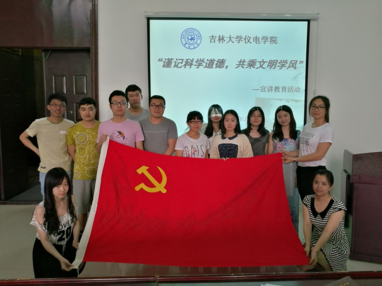 为了贯彻落实学院党员先锋工程实施方案,推进研究生党支部建设,进一步引导本院研究生遵守学术规范、坚守学术诚信,切实把立德树人的根本任务落到实处。2017年6月27日,学院2017年科学道德和学风建设宣讲教育报告会在地质宫208教室举行。我院组织支部党员、预备党员、积极分子以及有意向入党的群众开展“谨记科学道德,共乘文明学风”主题宣讲教育活动。精心设计“谨记科学道德,共乘文明学风” 主题演讲,以分发文件、朗读文章、PPT展示等形式学习。