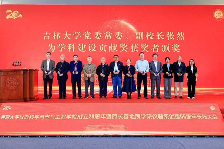 张希代表学校和田辉书记向出席庆祝大会的各位嘉宾表示热烈欢迎,向一直以来关心和支持吉大仪电发展的社会各界朋友表示衷心感谢。张希指出,一代代仪电人勇攀高峰、追求卓越,在科学研究和学科建设方面成绩卓著,取得了一系列重大科研成果,创造了我国许多“第一”或“唯一”,为祖国地学仪器自主研发事业提供了重要的人才支撑。张希强调,仪器是认识物质世界的重要工具。一方面,工具本身的发明研制就是原创性成果。另一方面,许多重大的科学进步都得益于仪器的发展和进步。我们要敢于打破成规、不怕失败,勇于发明研制基于新原理的仪器,同时也要注重将别人发明的仪器首先用于解决本学科的难题,以推动科技的进步。在人工智能时代,AI不仅是科学工具的革命,而且是科技革命的工具。面向未来,希望仪电学院把握“人工智能+地质”的重大历史机遇,一体推进教育发展、科技创新、人才培养和社会服务。不断拓宽人才引育渠道,持续优化师资队伍结构,提高师资队伍建设水平。大力加强深部探测与成像全国重点实验室等重大科研平台建设,不断提升学科建设和科研能力,更好服务国家战略需求。学校将一如既往继续大力支持仪电学科的建设,希望大家齐心协力、不懈奋斗,书写仪电新的辉煌。