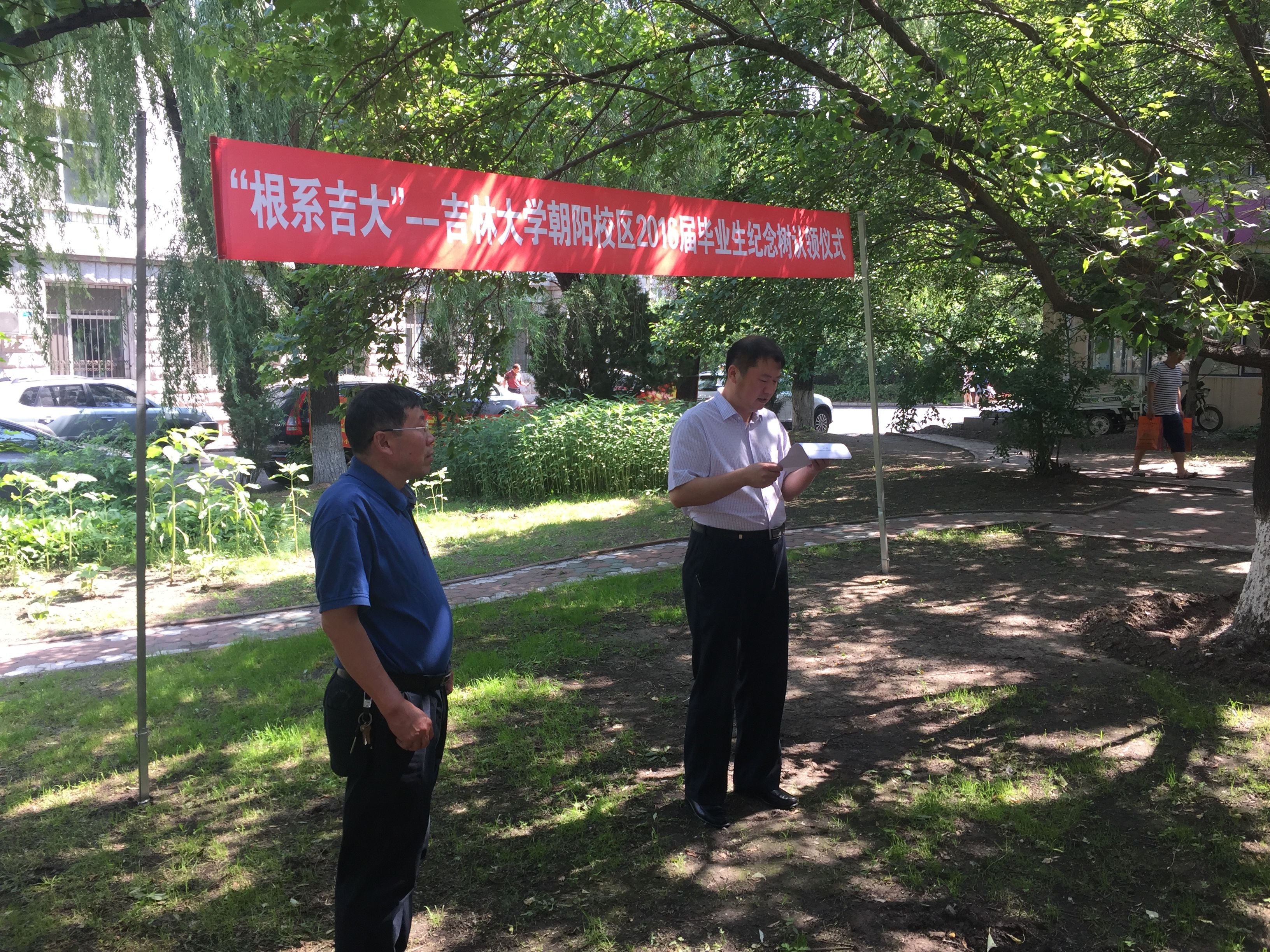 2016届毕业生纪念树认领仪式。参加此次植树活动的有学院党委书记余国友教授,院党委副书记兼副院长邱增凯老师及2016届毕业生代表。
