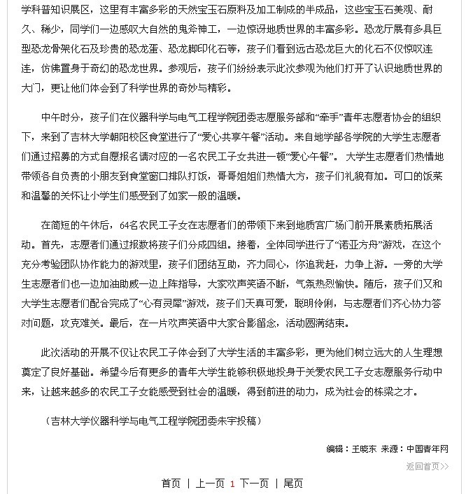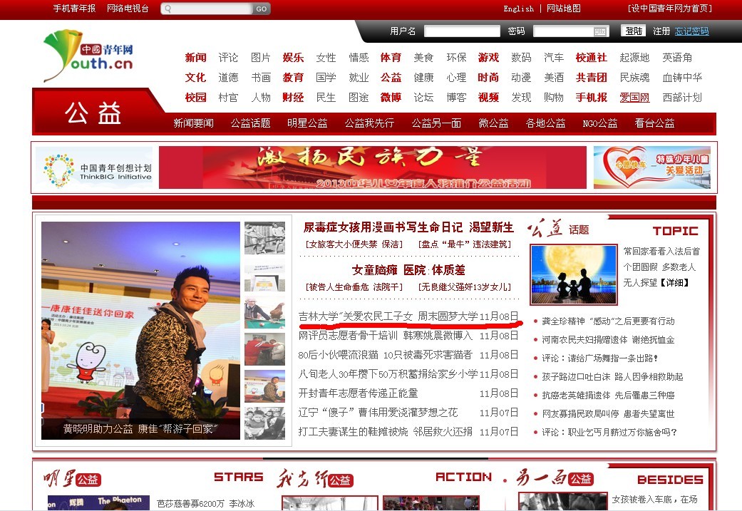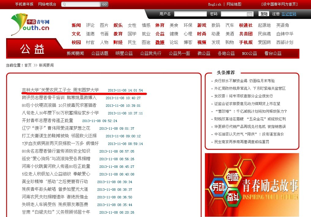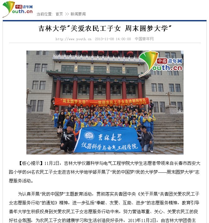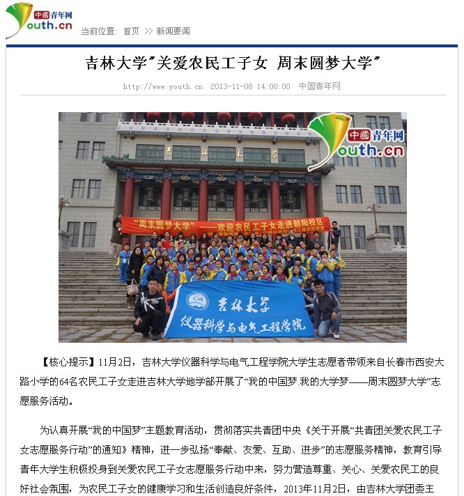 “关爱农民工子女 周末圆梦大学”》为题对此次活动进行了详细报道。中国青年网由共青团中央主办,是国内最大的青年主流网站。此次活动是继2013年8月6日中国青年网以《色情短剧