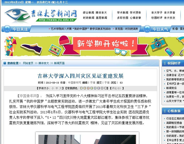 2013年暑期“三下乡”社会实践活动中唯一一个受到中国青年网关注报道的活动。