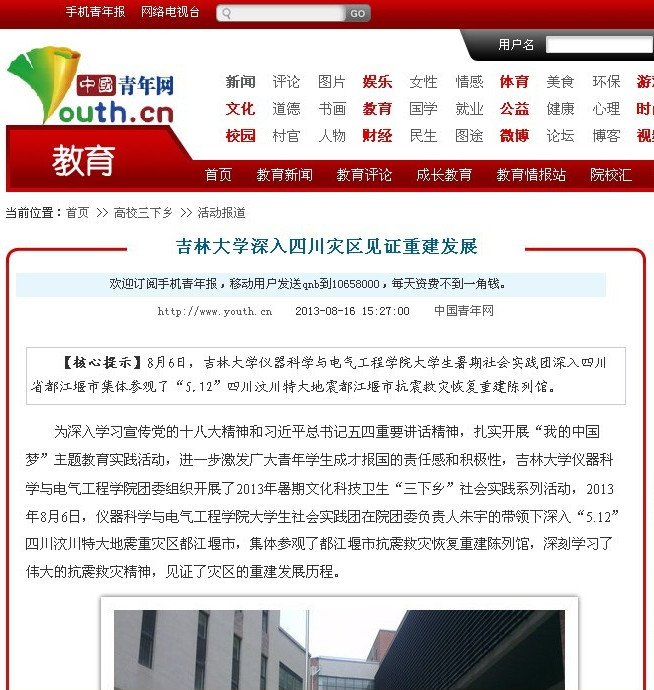 大学生社会实践团深入“5•12”四川汶川特大地震重灾区都江堰市开展的实践活动受到了共青团中央主办的中央重点新闻网站——中国青年网的关注报道,并得到了色情短剧