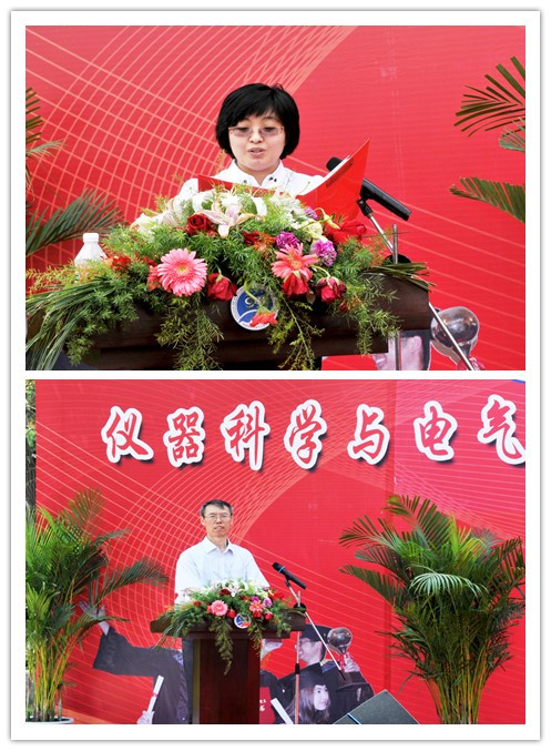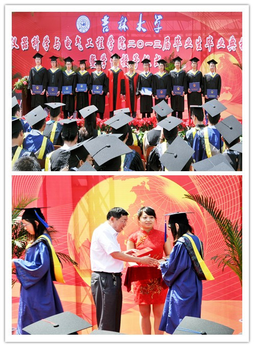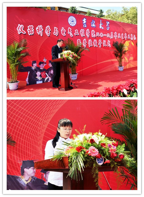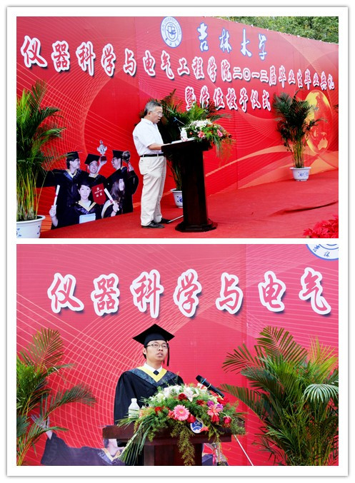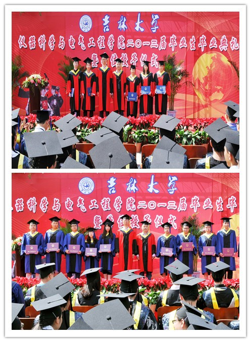 2013届研究生毕业生和本科毕业生名单,院长林君教授与院学位委员会主任田地教授一起为2013届毕业生授予学位。随后,院党委书记余国友教授宣读了2013届校、院优秀毕业生名单,并为优秀毕业生颁发获奖证书、合影留念。学院教学委员会主任王应吉教授宣读了优秀毕业论文名单,仪器系主任凌振宝教授、电气系主任刘长胜副教授分别为获得优秀毕业论文的同学颁发证书并合影留念。之后,教师代表朱凯光教授和2013届毕业生代表、色情短剧