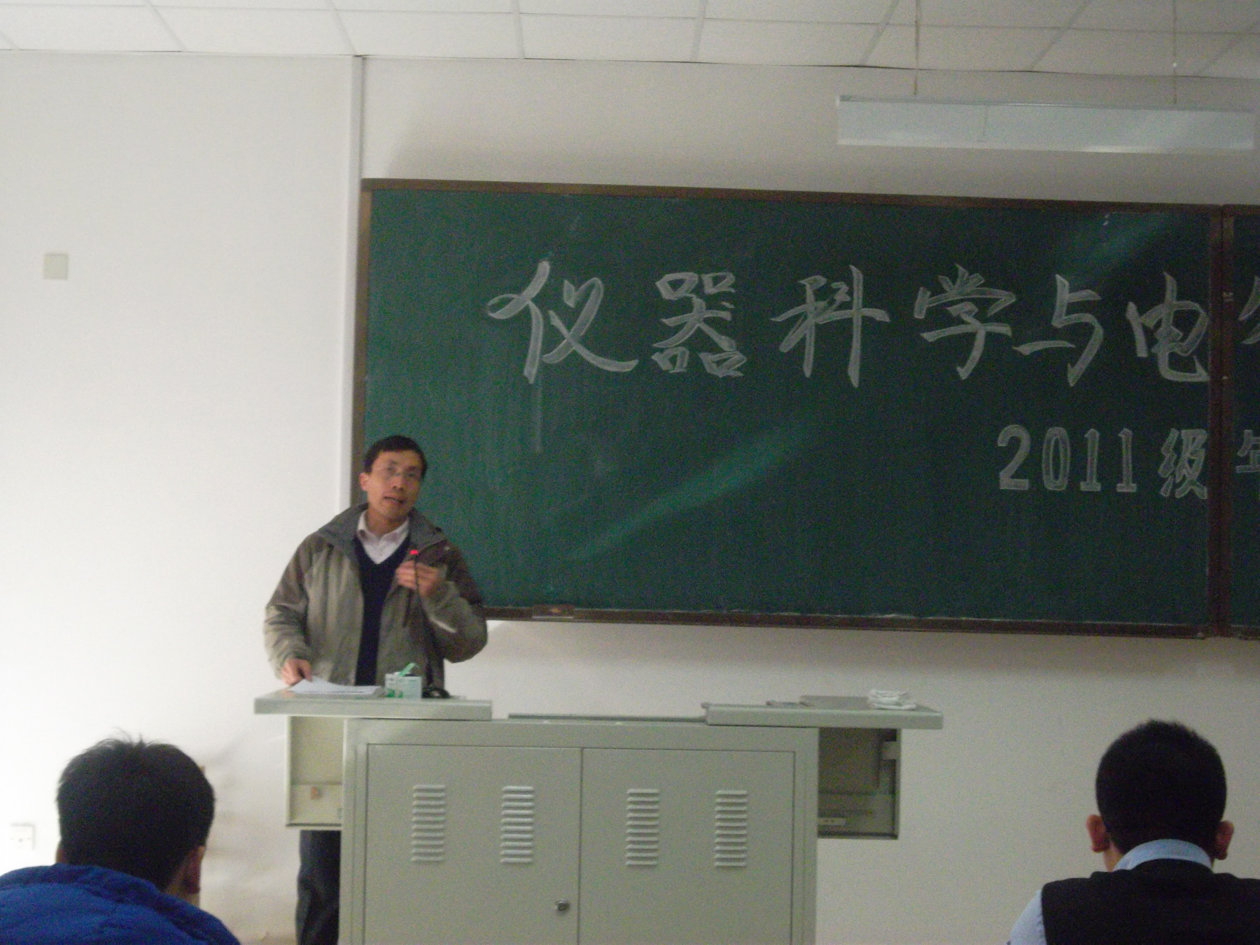 2013年大学生电子设计竞赛和大学生创新创业实验项目这两大方面的内容,对大家进行了细心的指导。随后,院党委副书记兼副院长邱增凯老师进行了总结讲话,邱书记向大家详细介绍了学校电子大赛的发展历程及我院学生历年的获奖情况,他鼓励大家要积极地将专业知识与动手实践有机结合,他动员2011级全体同学积极参加到即将举行的校电子设计竞赛中,鼓励大家认真选题,大胆创新,力争在今年的校电子设计竞赛中再创佳绩。会后,各位领导和老师还耐心地与2011级同学进行了交流与沟通,针对同学们提出的问题给出了切实宝贵的意见。