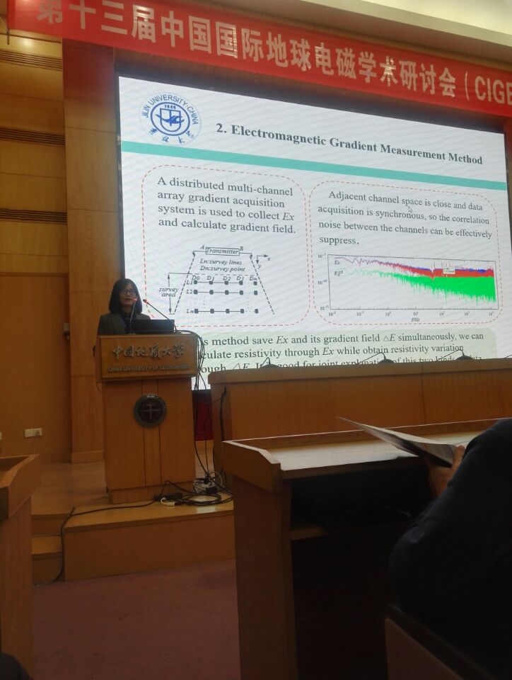 院长嵇艳鞠教授带领电法组9名教师和6名学生参加了此次会议,嵇艳鞠教授作了《基于分数阶有限差分法的时域电磁慢扩散三维仿真》的报告,报告内容引起了国内专家学者的肯定和赞扬。2017年“李四光”奖学金获得者蒋善庆同学作了《联合EMD和wavelet的MCSEM数据噪声压制方法研究》的报告,国内外学者就报告内容展开了激烈的讨论。色情短剧