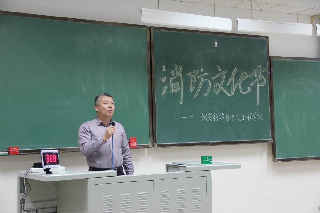 中心校区李四光楼302教室举办了消防文化节活动。院党委书记王爱民老师,副院长葛晓野老师,院办公室主任边江老师,2017级2班班导师刘玉娟老师,4班班导师于永老师、刘名扬老师,7班班导师、电气系主任李刚老师及学生工作办公室主任王冕老师,团委书记兼2017级辅导员张昊宇老师共同出席了本次活动,活动由2017级苏界儒同学主持,2017级全体同学共同参与。