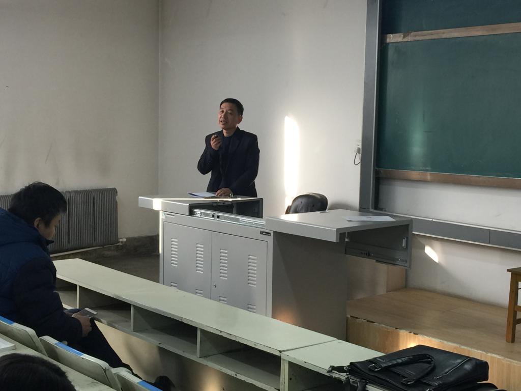 党委书记王爱民老师作总结发言,他首先对学院浓厚纯正的学风给予了充分肯定,学院本科教学所取得的成绩正是源于学院优良的教风和学风,并号召同学们继续传承发扬下去。其次,他以真实生动的案例劝导大家不要作弊,告诉同学们应该树立诚信意识,认清考试舞弊行为的危害性和不可弥补的严重后果。王爱民老师要求同学们要以实力验证自我,以诚信构筑人生。他敦促同学们要抓紧一切时间复习备考,并预祝同学们期末考试取得优异的成绩。最后,王爱民老师对学生加强假前及寒假期间安全工作做了重点强调,强化了学生遵纪守法意识和安全防范意识。