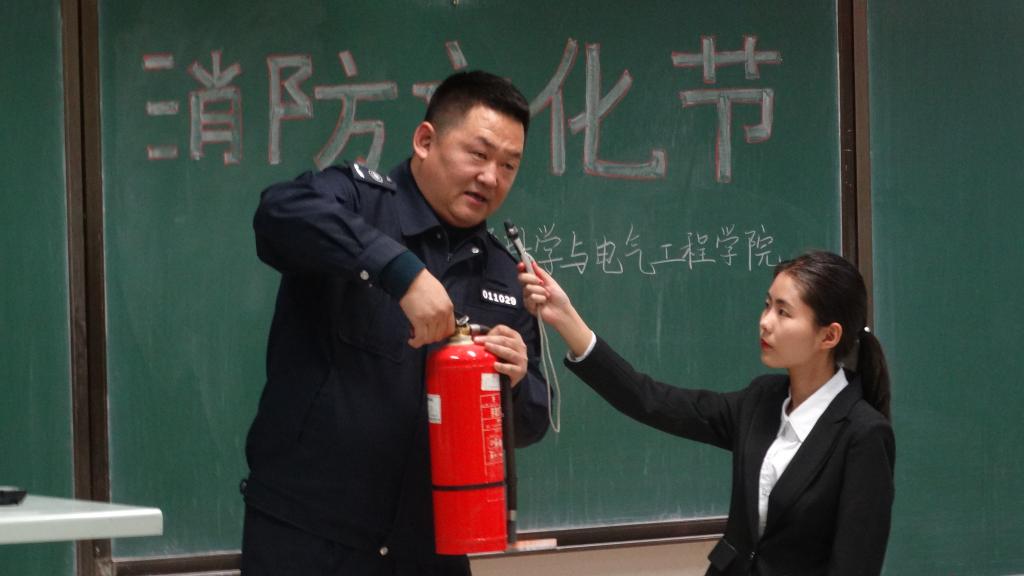活动伊始,董立明老师为大家做消防安全知识介绍,他肯定了我院对于消防工作的重视,随后为我院学子介绍了日常生活中的消防安全隐患及处理方法,并现场演示灭火器的正确使用步骤。随后,播放了消防安全宣传视频,同学们对消防安全有了新的认识。视频观看结束,2019级同学依次上台展示消防安全宣传教育作品,作品内容健康向上、构思新颖,赢得了全院师生的阵阵掌声。作品展示过后,进入消防安全知识竞答环节,选手们争先作答、气氛活跃。竞答结束后,同学们意犹未尽,主持人与现场观众进行互动,同学们纷纷举手抢答。互动之后,主持人公布评选结果,邱增凯老师、葛晓野老师和艾维斯老师分别为获奖班级颁发证书。最后,邱增凯老师为本次活动做总结讲话,他强调,作为当代大学生,首先要提高消防安全意识,其次在火情发生时要保持冷静,还要主动学习、掌握自救逃生知识。邱老师呼吁同学们关注消防安全,提高消防意识,为营造关心消防、重视消防、群防共治的良好氛围共同努力。至此,本次消防文化节圆满结束。