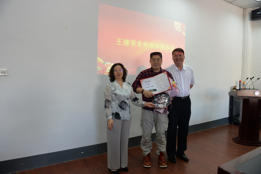 最后,嵇艳鞠和邱增凯为王德荣老师颁发了荣休证书和纪念品,再一次代表学院道谢致敬。参加仪式的全体老师合影留念,共同见证这一隆重的时刻。