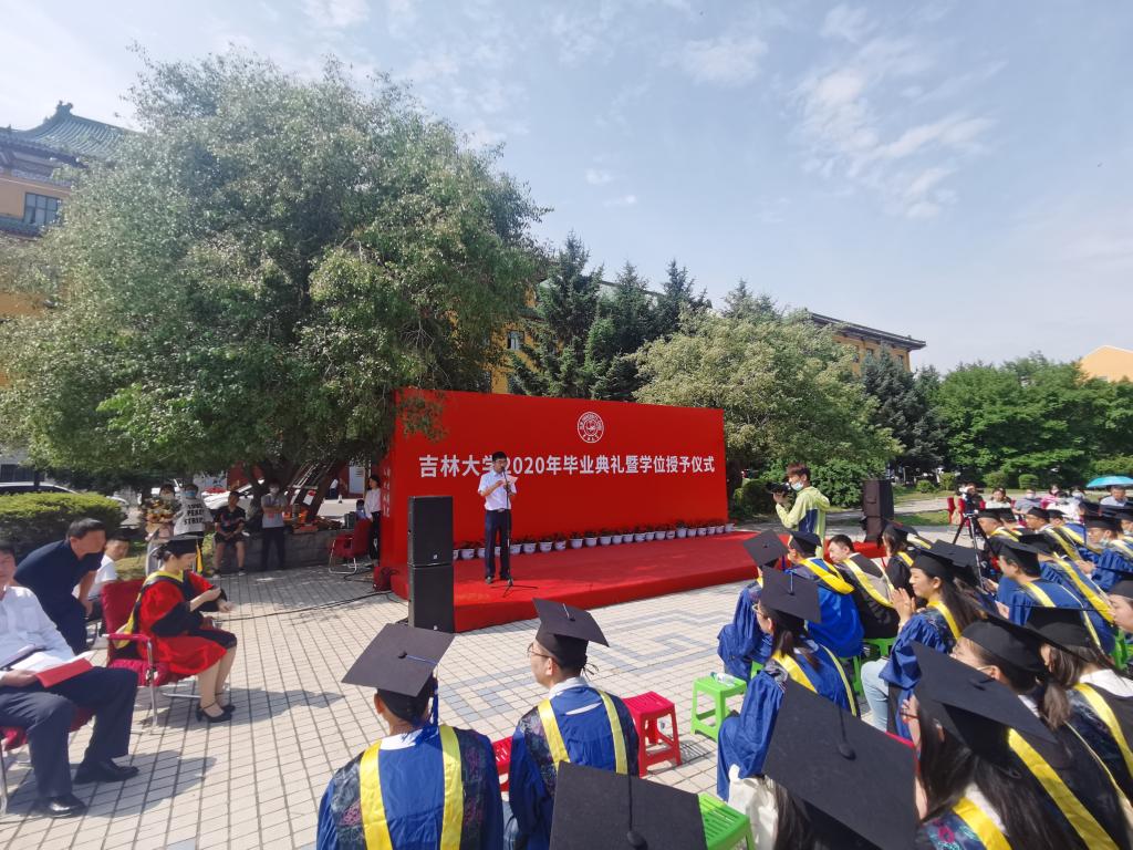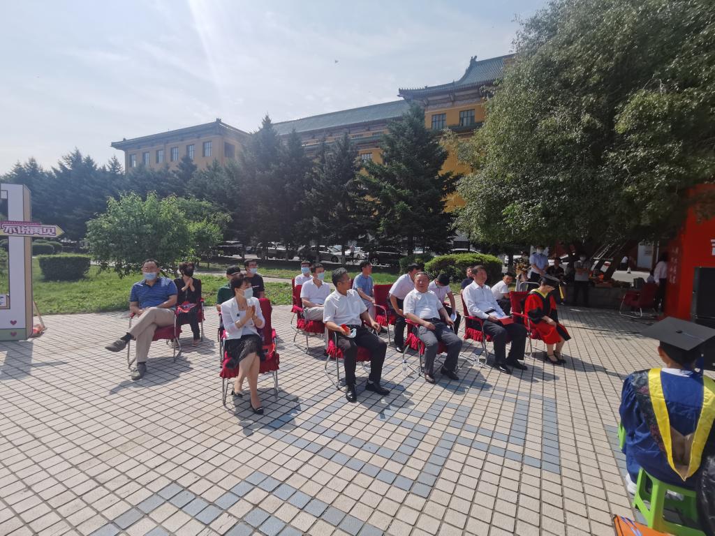 北区综合办公室主任戴世和,北区学生工作办公室主任贾晓辉,北区教务办主任苗广文,吉大致远资产经营有限公司副总经理、原16级辅导员王冕,学院领导班子全体成员,院教学委员会主任陈祖斌,院学科学位评定分委会副主席于生宝,毕业年级班导师,各系主任,学院相关职能部门负责人,教师代表及全体返校毕业生参加典礼。毕业典礼由党委副书记兼副院长周伟主持。