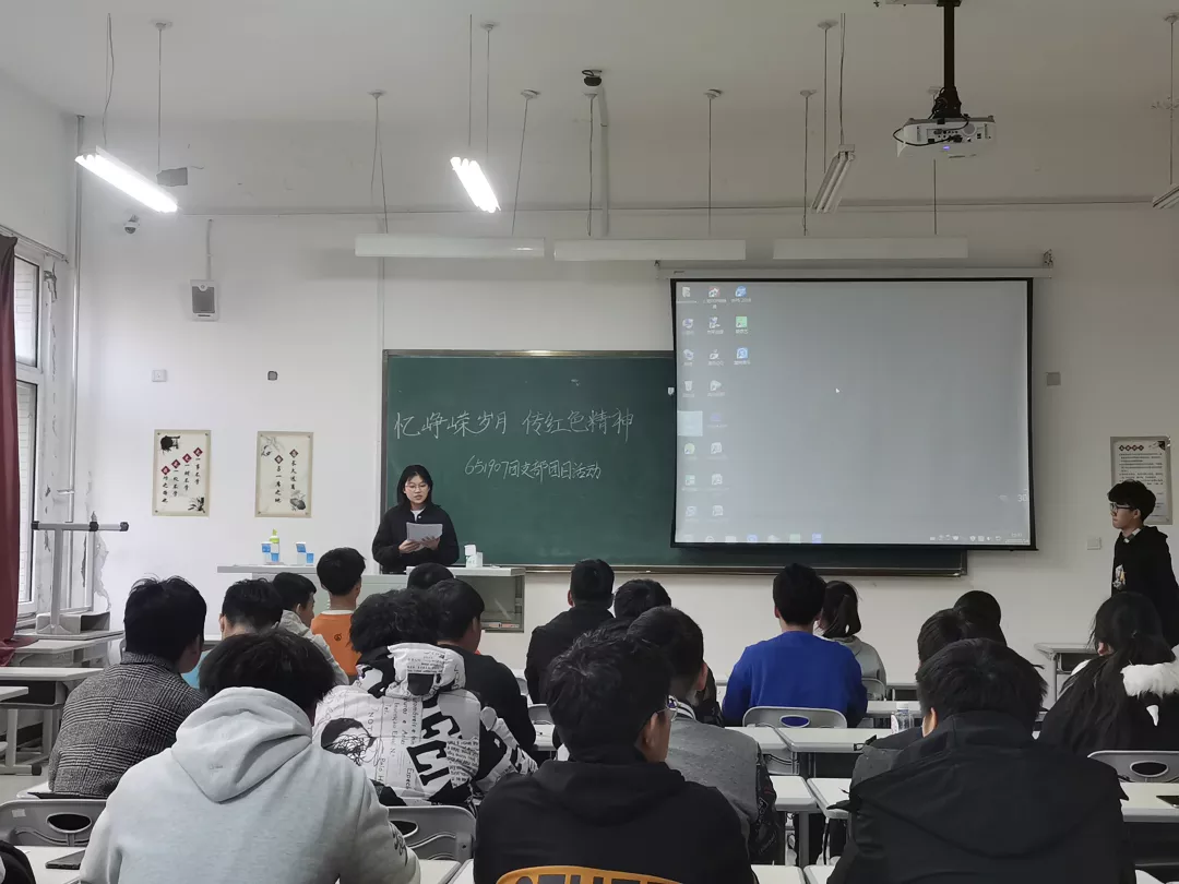 为加强学生思想建设,弘扬爱国主义精神,2020年11月14日下午3:30,仪器科学与电气工程651907班在李四光教学楼207教室开展“忆峥嵘岁月,传红色精神”主题团日活动。本次活动由朱莹莹同学主持,651907班全体同学出席本次活动。