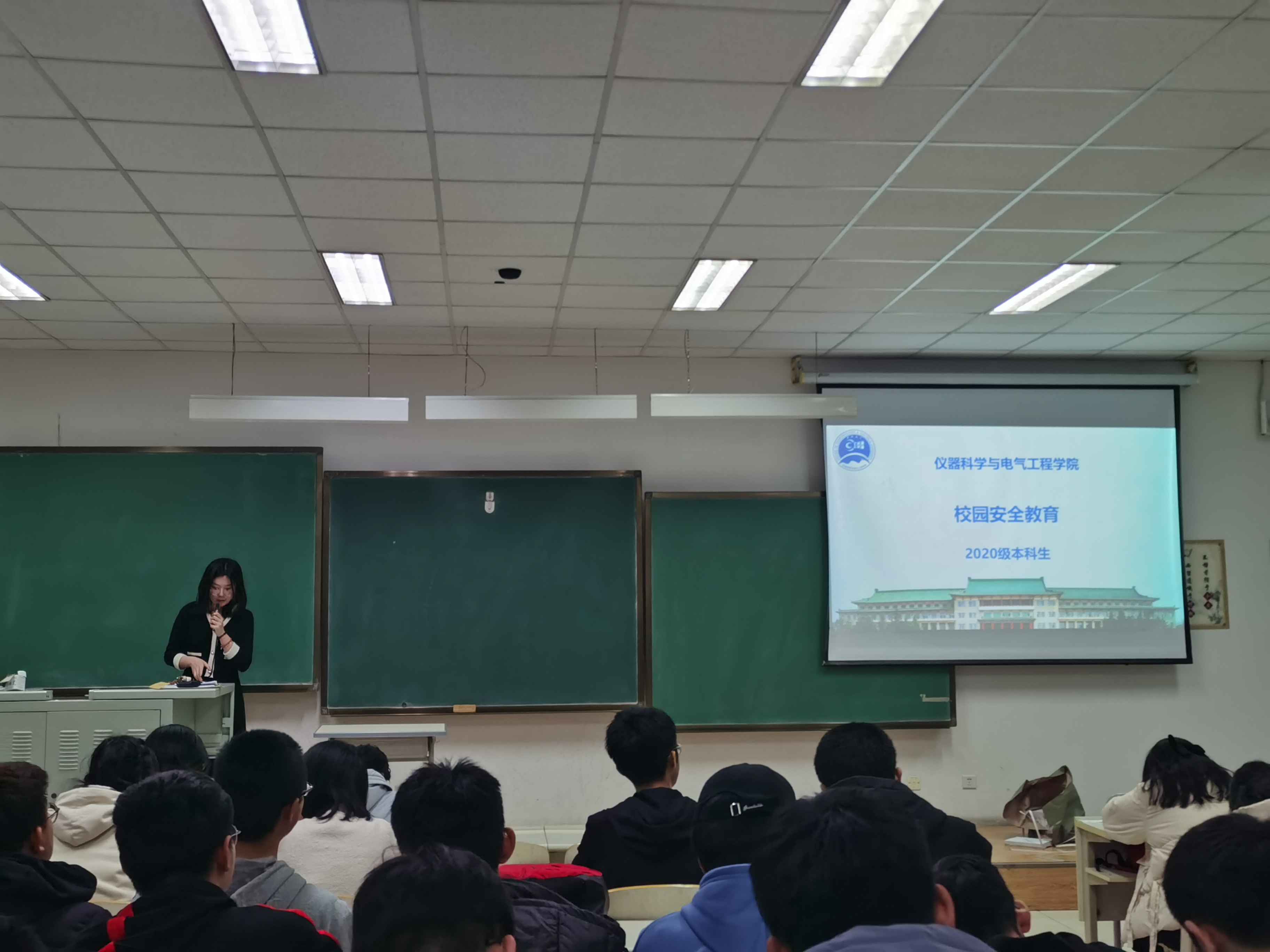 为新生能够更好更安全的适应大学生活,提高他们的安全预防意识,2020年9月21日,仪器科学与电气工程学院在李四光教室开展了新生入学安全教育主题讲座。2019、2020级辅导员马姗姗老师担任主讲,2020级全体学生参与了本次讲座。