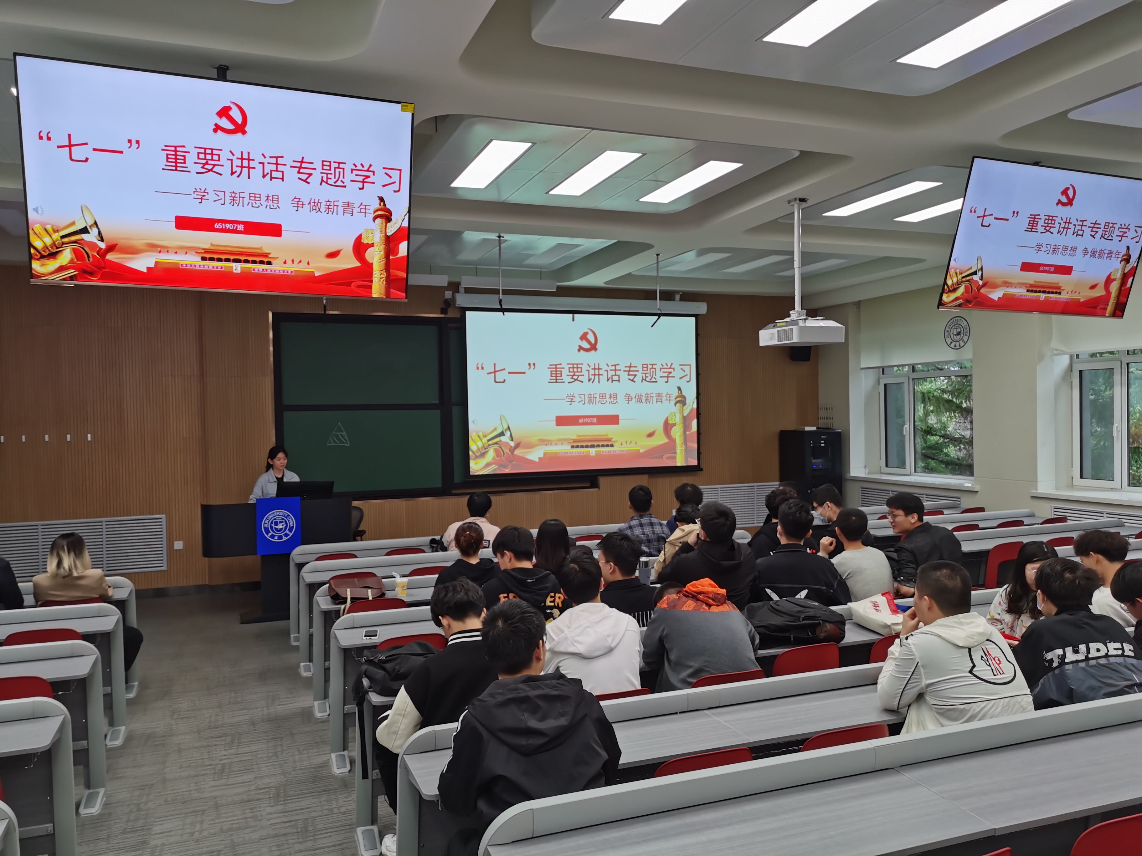 团委组织开展 “请党放心,强国有我”系列主题教育,各团支部围绕“回顾党史”、“展望未来”等主题开展了丰富多彩的活动。