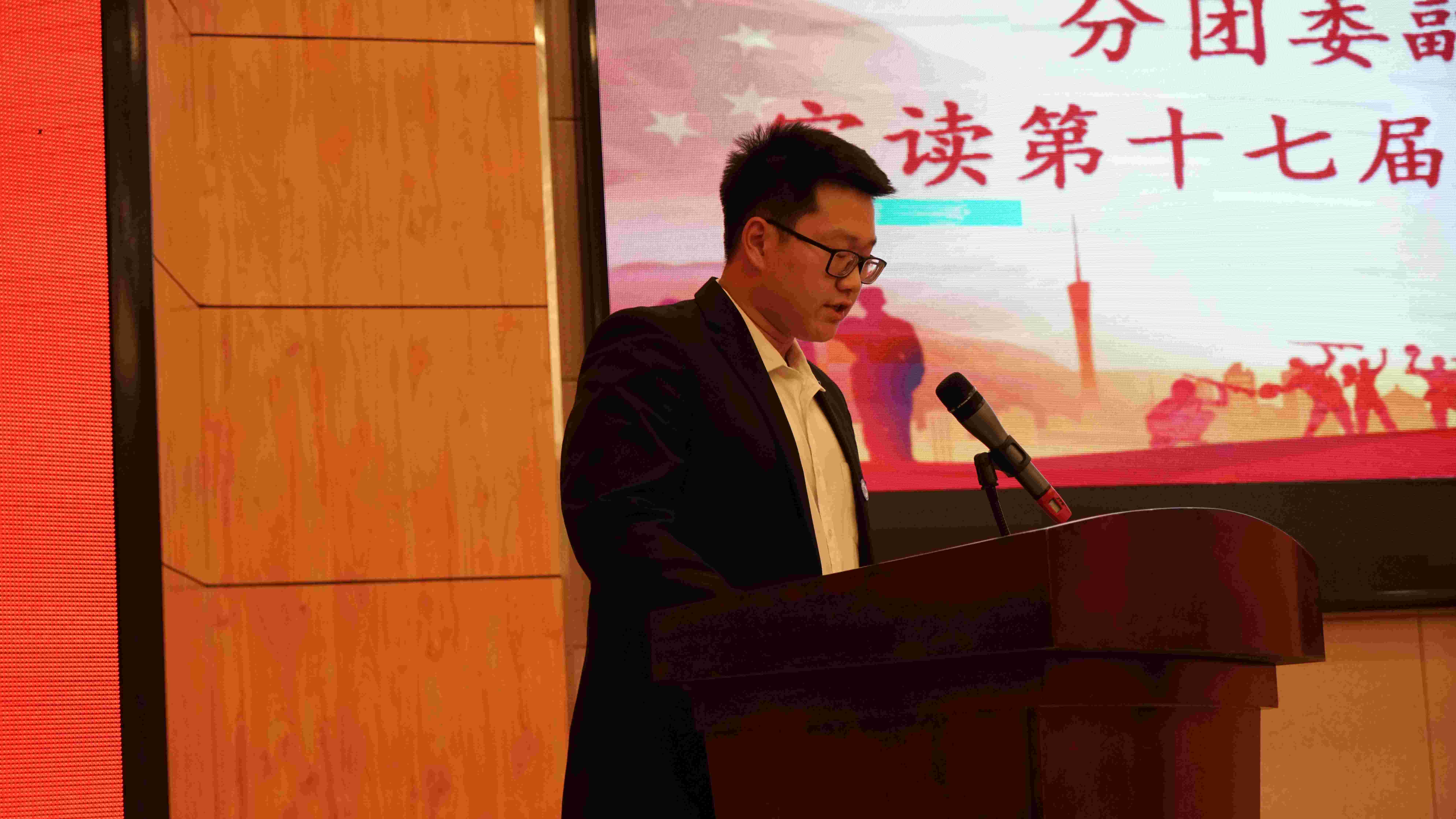 第一次全体会议在慷慨激昂的中国共产主义青年团团歌声中拉开序幕,第十六届分团委副书记史博日同学作为筹备委员会代表上台作《色情短剧