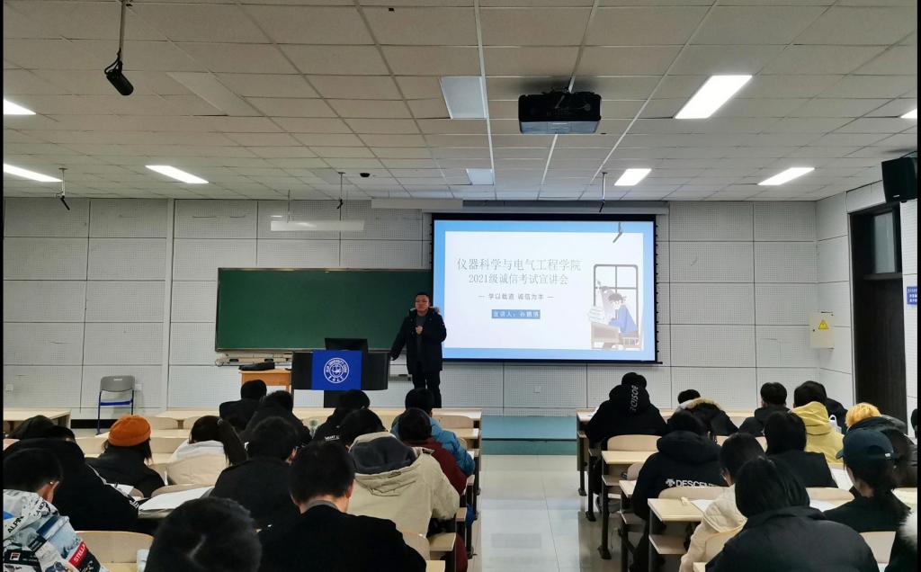 于12月18日在李四光楼召开2021级诚信考试教育大会,本次大会由孙鹏博老师主持,2021级全体同学参加。