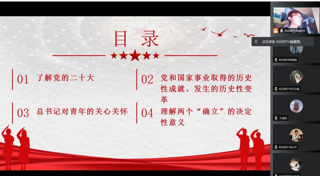 通过本次活动,同学们重温了党的历史,对党的发展有了新的认识。作为新时代青年,支部全体同学将继续在学习生活中担当有为,保持昂扬的精神状态,不断提高自身综合素质以优异成绩向党的二十大献礼!