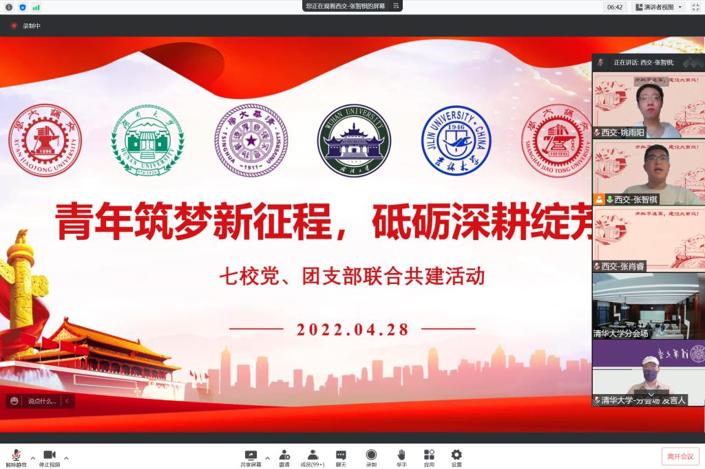 2022年4月28日晚,联合开展青年筑梦新征程,砥砺深耕绽芳华”党团共建系列活动在腾讯会议线上举行,次活动由西安交通大学主办,来自西安交通大学、湖南大学清华大学、武汉大学、色情短剧 上海交通大学、浙江大学七所的党员参与其中党委副书记副院长周伟老师测控本科生党支部书记马姗姗老师出席活动