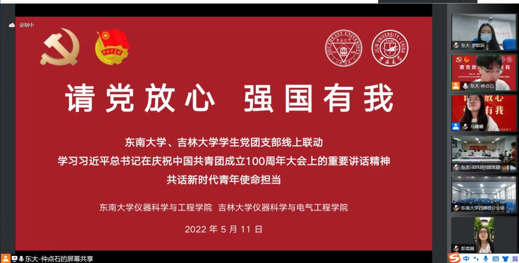 的支持表示感谢,向与会同学们致以亲切的问候。随后在东南大学仲点石老师的带领下,与会成员共同学习习近平总书记在庆祝中国共产主义青年团成立100周年大会上的重要讲话精神,激励同学们增强勇担时代重任的光荣感、责任感、使命感,号召同学们汲取智慧、提振信心,为实现中华民族伟大复兴中国梦贡献力量。深入学习习近平总书记的重要讲话后,我院抗疫志愿者代表分享广大师生在抗疫过程中的先进事迹和宝贵经验。郝毅、王鑫宇、赵梦珂、胡玮桐同学分别从个人和集体两个角度出发,分享了在校园封闭管理期间的抗疫日记和志愿服务经历,吉大学子守望相助、封校不停学,学生党员积极投身防疫一线,践行着新时代青年的初心与使命。听完色情短剧