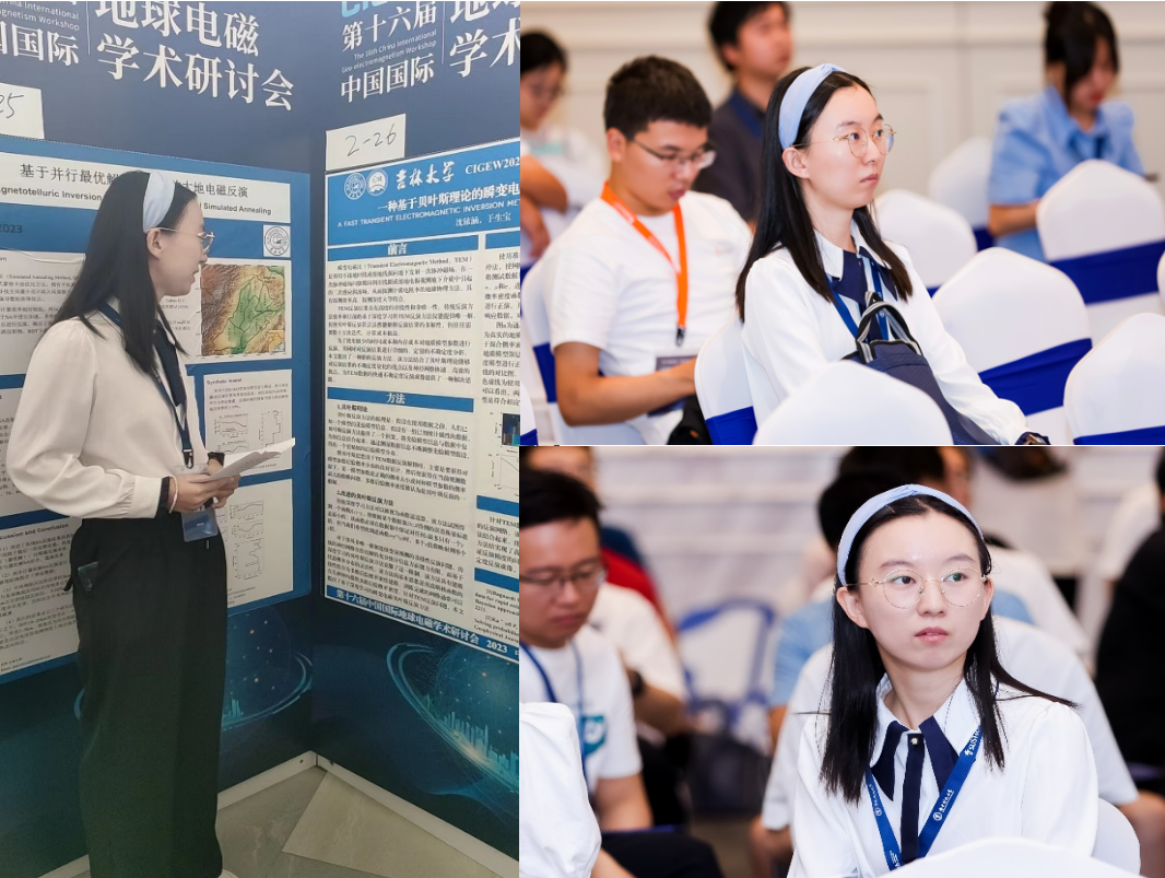马彬原:通过参加第十六届中国国际电磁学术研讨会并做了张贴报告演讲,我深切感受到了电磁探测方法与装备研发的同行们对地球物理电磁领域的热爱与巨大贡献,在物联网、机器学习、智能仿生等前沿技术的推动下,地球电磁探测方法正在进行新一轮的创新阶段,地球电磁探测装备也将向着更精、更准、更深、更智能的方向革新换代。我将把参与本次会议的学习成果内化于心,外化于行,与当前研究课题超导瞬变电磁精细化探测最核心的问题相结合,为电磁勘探领域的方法创新与装备研制贡献青年力量!