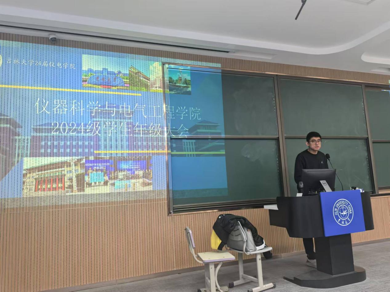 召开“明确大学方向,拥抱多彩校园”主题年级大会。2024级辅导员王文轩主讲,全体新生参与。