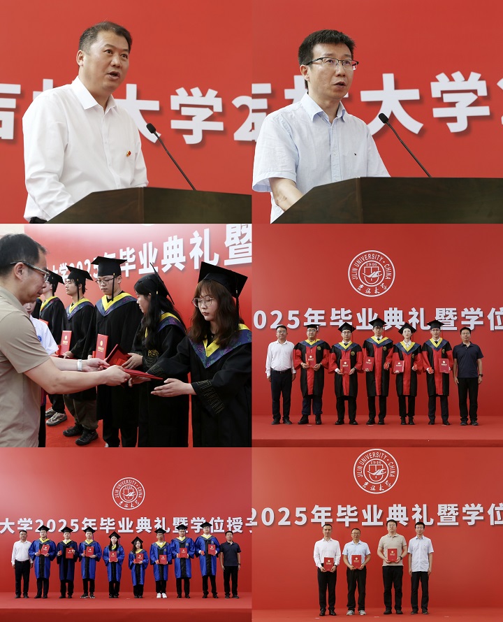 典礼在庄严的国歌声中拉开序幕。随后,副院长、学院学位评定分委员会副主席赵静宣读了博士、硕士学位授予决定;副院长、学院学位评定分委员会副主席李刚宣读了学士学位授予决定。在悠扬的乐曲中,主礼教授为博士、硕士及学士学位获得者依次授予学位,毕业生们身着学位服接受拨穗正冠,标志着学业的圆满收官。