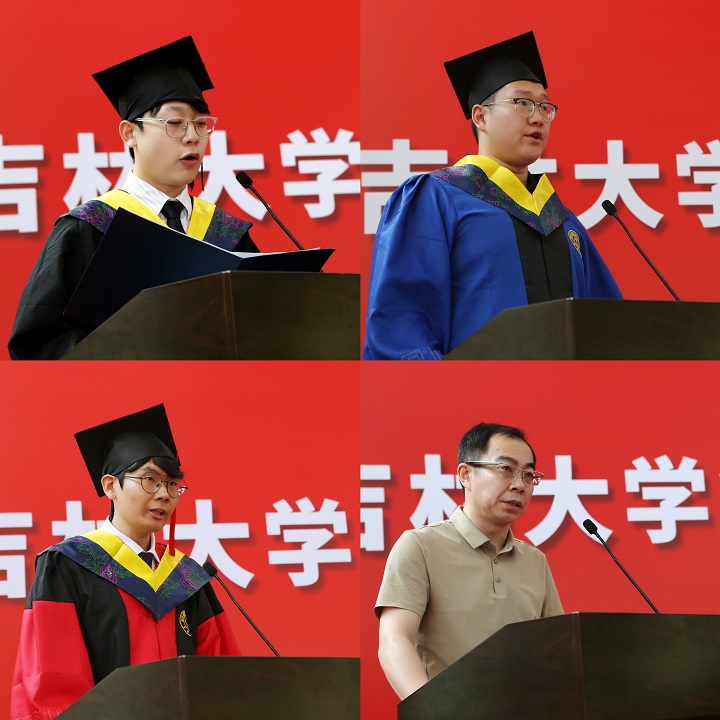 2025年度十佳博士研究生刘怀湜、2022级硕士研究生史博日、2021级本科生张普一分别作为博士、硕士、本科毕业生代表发言。刘怀湜回顾了自己9年来在学院求学的收获与感想,他回忆了在进行超导量子传感技术的电磁探测应用研究中,随着研究的深入,他深切感受到国际上发达国家的技术封锁,以及一些卡脖子问题带来的困境和无奈。他表达了坚定投身地学仪器攻坚的信心和决心,希望以所学为祖国突破深地电磁探测瓶颈贡献青春和力量;史博日以“当代‘仪电学子’的担当”为主题,从“孜孜不倦,求知探索”“志存高远,勤勉笃行”“众志成城,勇担重任”三个方面回顾了自己的求学之路;张普一回顾了求学时光,感恩了师长培育,表达了对母校和学院的深切眷恋与未来报效社会的决心。