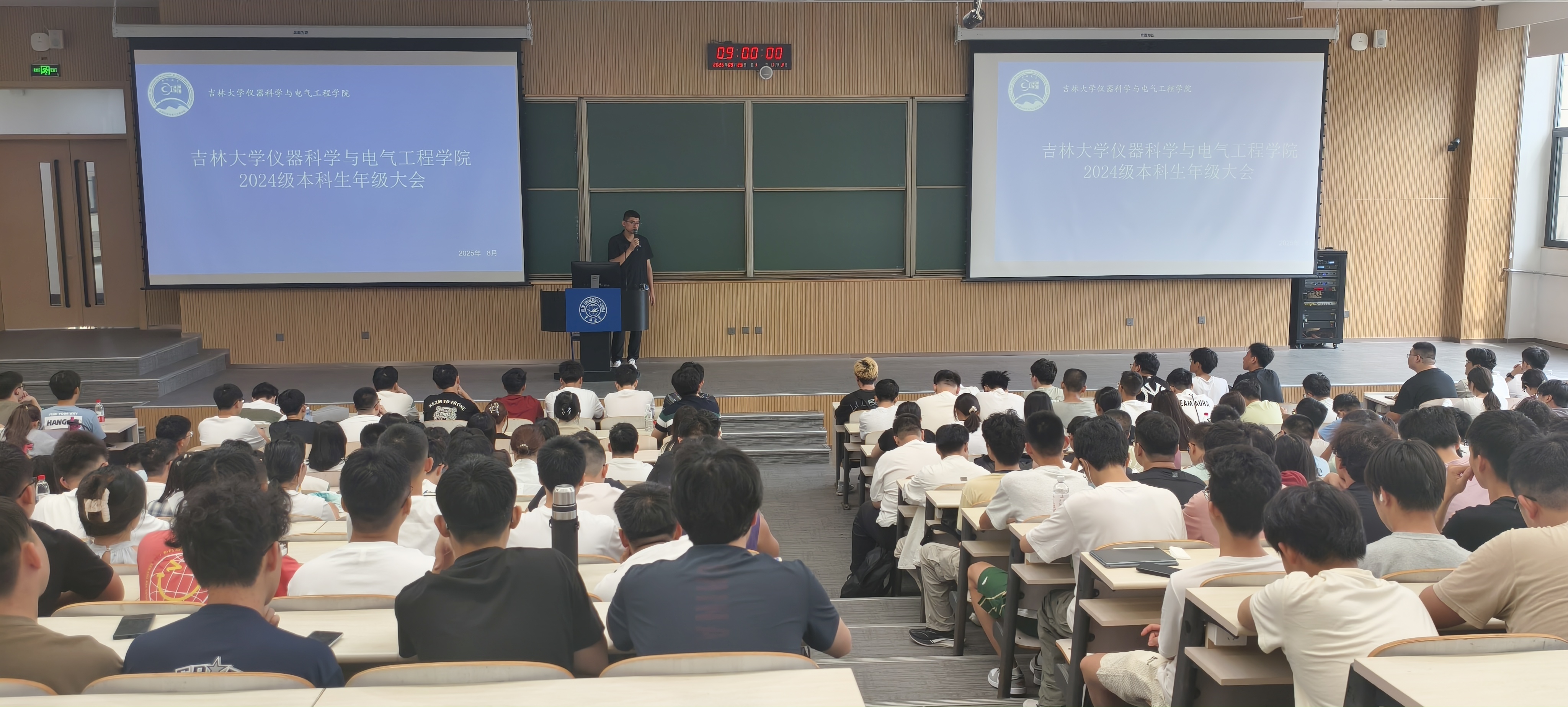 2024级本科生辅导员王文轩在李四光楼召开2024级学生年级大会,系统规划学期学业与成长重点工作。