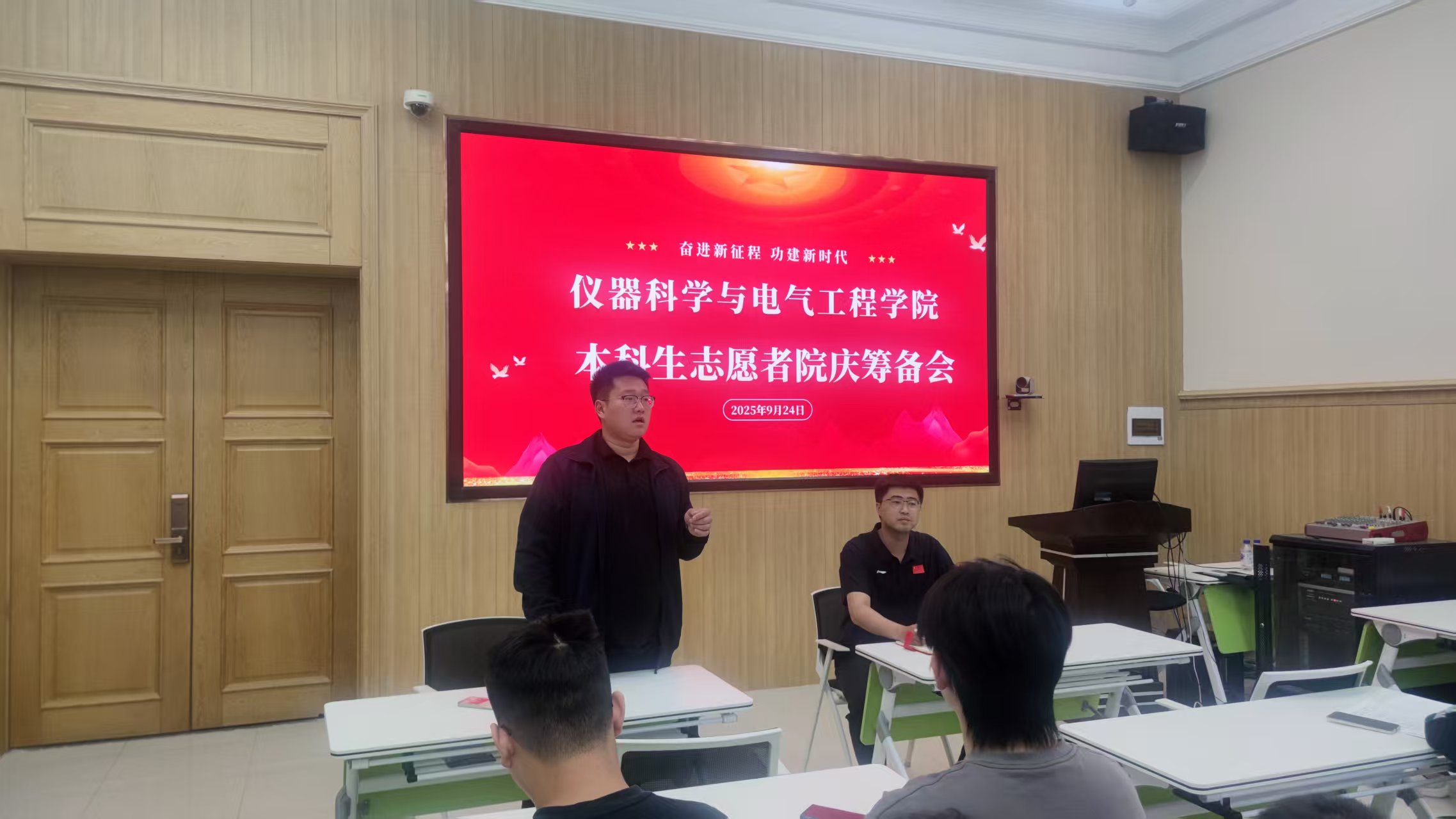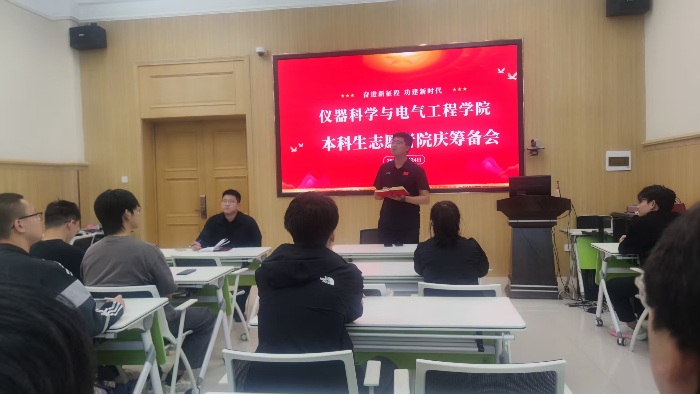 在朝阳校区地质宫208会议室召开本科生志愿者院庆筹备会议。学办兼团委负责人、2022与2023级本科生辅导员包健伦老师主持会议,2024级本科生辅导员王文轩老师,2025级本科生辅导员史博日老师以及团委学生会主要成员,各年级班干部出席会议。