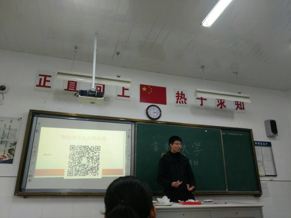 16级七班王雅文同学及其高中兼大学校友于1月18日在江苏省重点中学——扬州中学开展了宣传活动。