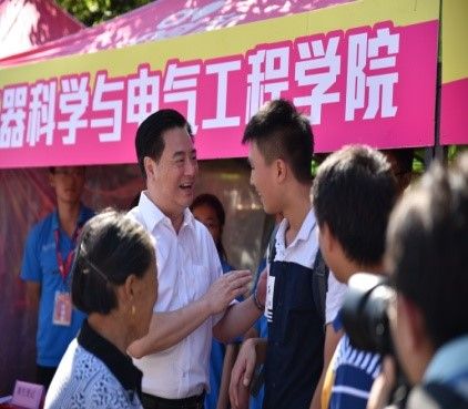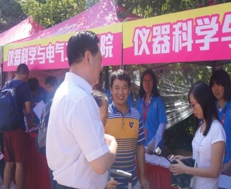 校长李元元院士在学校相关职能部门负责人陪同下来到中心校区五月花广场视察2016年迎新工作情况。