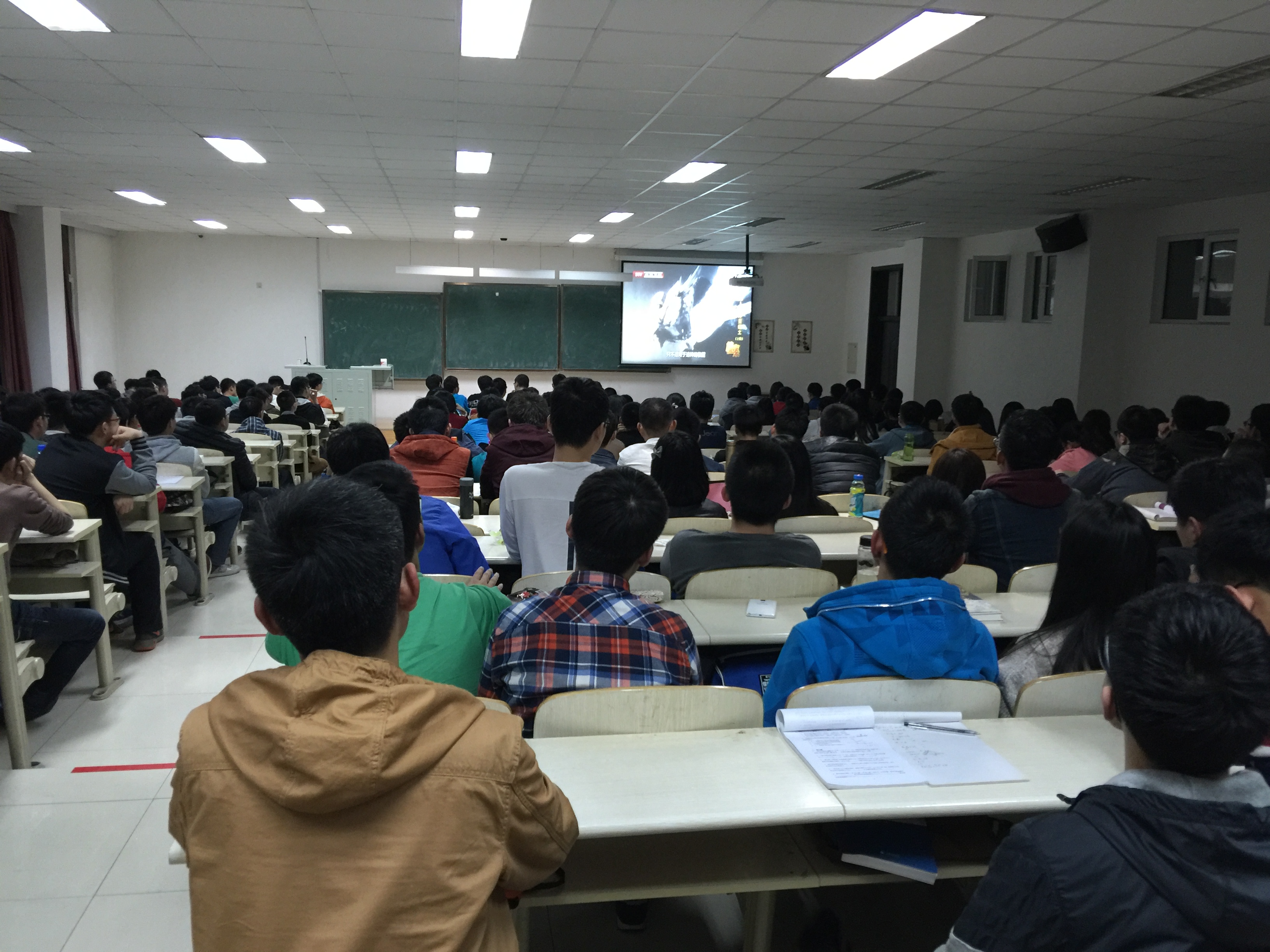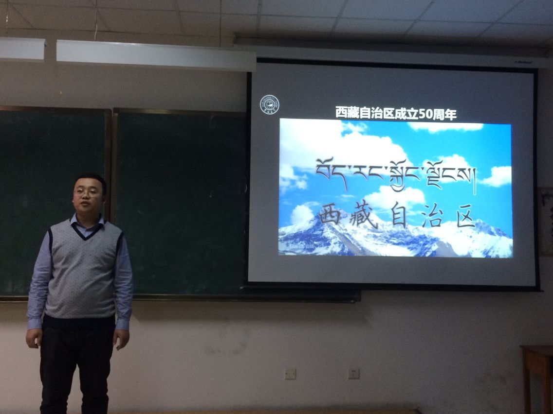 于中心校区李四光教学楼304教室组织2015级全体学生观看纪录片《西藏》,2015级辅导员张昊宇老师全程参加。
