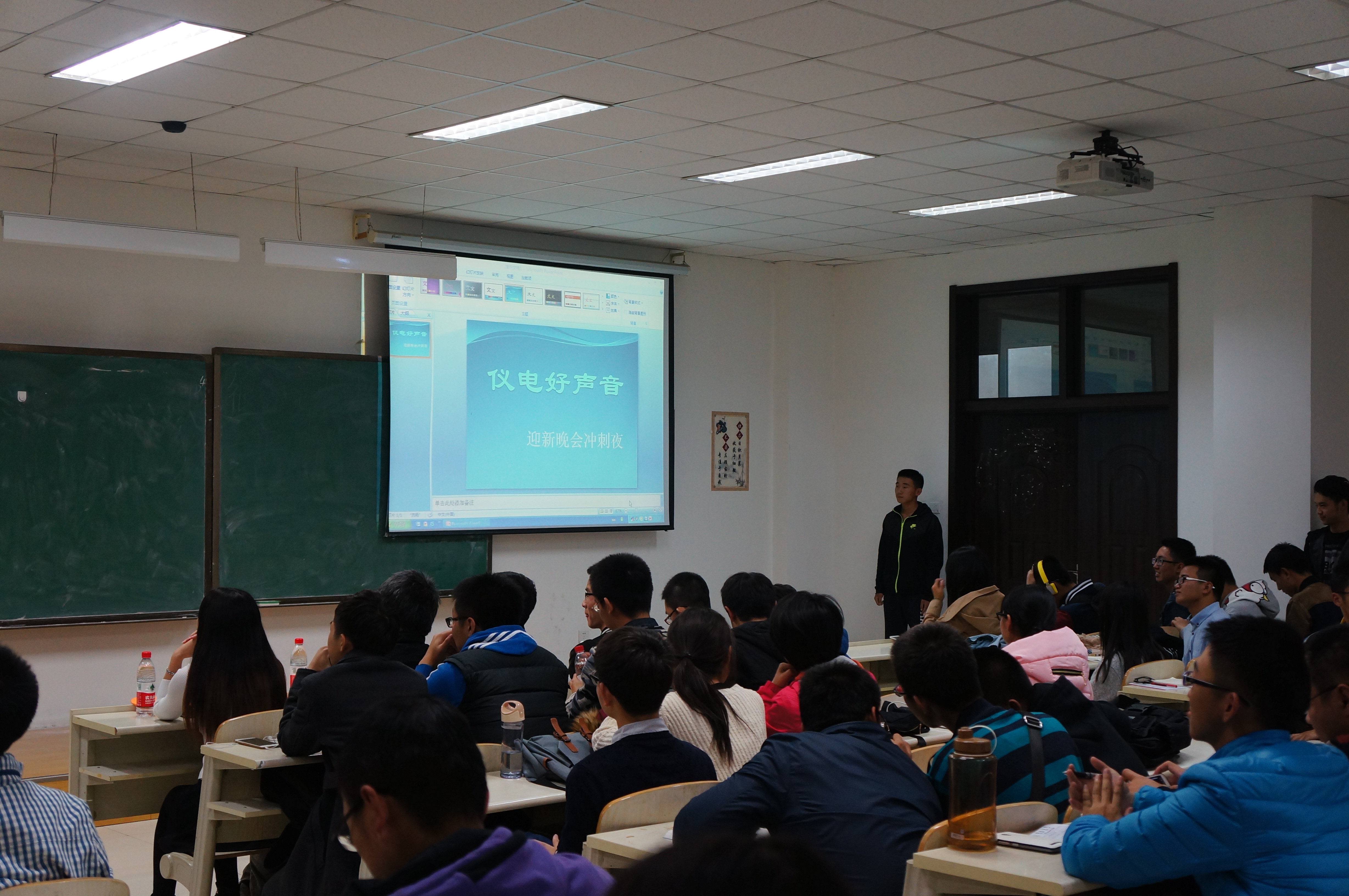 经过一周的准备工作,“仪电好声音”十强选手在全学院同学的期待中再度发声。“仪电好声音:迎新晚会冲刺夜”(“仪电好声音”复赛)于2015年10月25日19:00在中心校区李四光楼208室举办。2015级辅导员张昊宇老师,分团委第一副书记于一兵,学生会主席岳良广,新闻通讯社社长任晓闯,秘书部部长樊毅尧及文艺部部长周琪出席了本次活动并担任评审嘉宾。