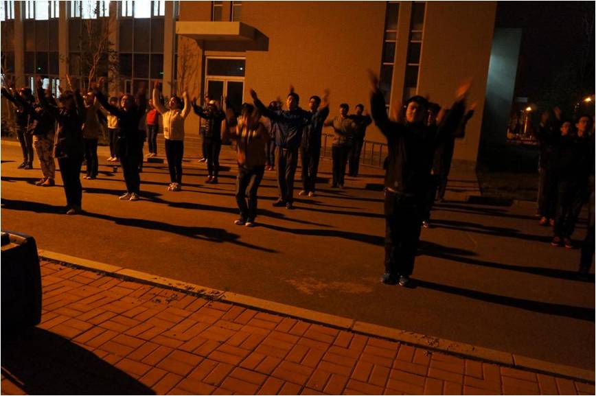 广播体操团队队员在院学生会负责人的组织下集中开展了赛前训练工作。