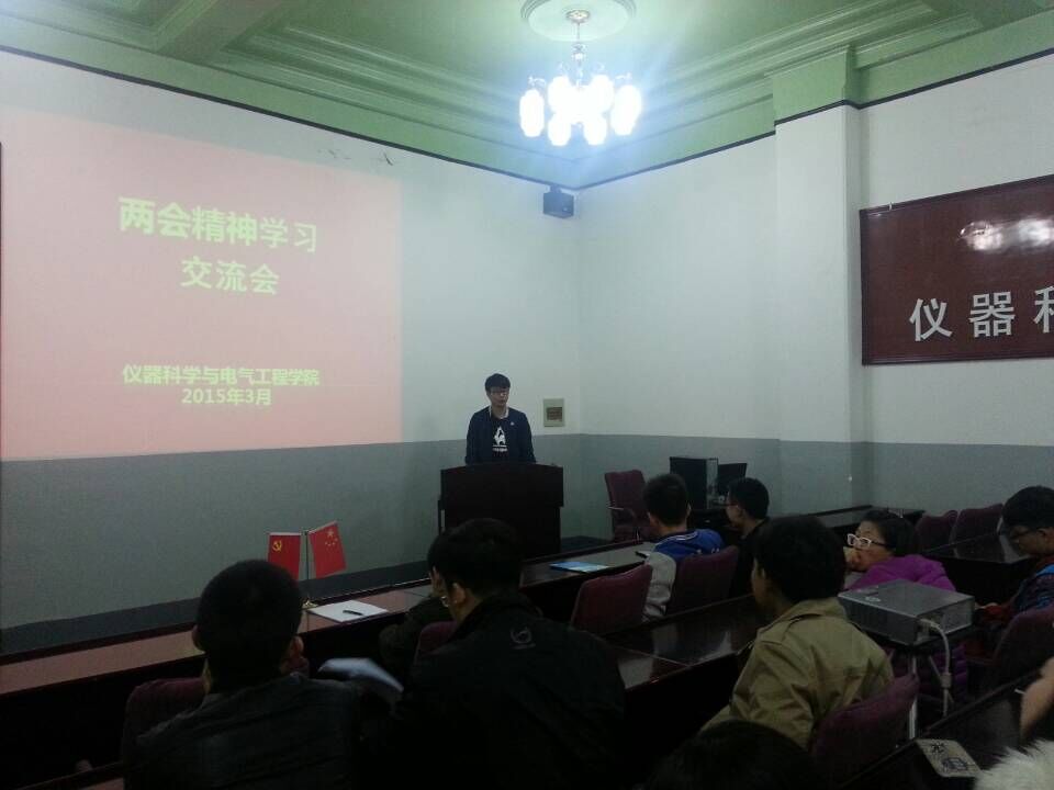 会上,蔡印老师带领大家对目前两会的热点话题进行了分析讨论。首先,学习部部长宋继斌就环境治理问题表述了自己的观点,表示在保证经济稳步增长的同时,改善环境条件,保证人民健康,给人民良好适宜的生活环境也十分重要。随后,文艺部部长王宏霞对日前备受瞩目的食品安全问题提出了几点建议,她指出我国已经成为世界第二大经济体,完善安检制度迫在眉睫,加强食品安全的检验和管理,让百姓吃得放心是我国食品安全发展的重中之重。最后大家结合自身生活实际和所学专业,畅所欲言,对“两会”精神进行解读,表达了各自的独到见解,交流会在轻松愉快的气氛中落下帷幕。