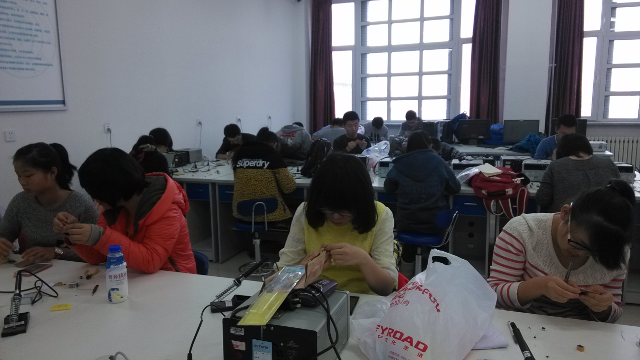 本期培训由会长任同阳,技术部部长李沣濡担任主讲,首先进行的是焊接材料的分发,然后主讲人为大一同学讲解了本次培训所要焊接的“红外出水器标准版”的基本构成和焊接要点。讲解之后,会长任同阳对第一次培训的情况做了总结,告诉大家易出现的错误以及避免的方法。紧接着同学们开始焊接自己的电路板,大家十分认真,培训现场一片安静。最后,同学们陆续完成作品,交由学长进行测试打分,本次培训活动圆满结束。