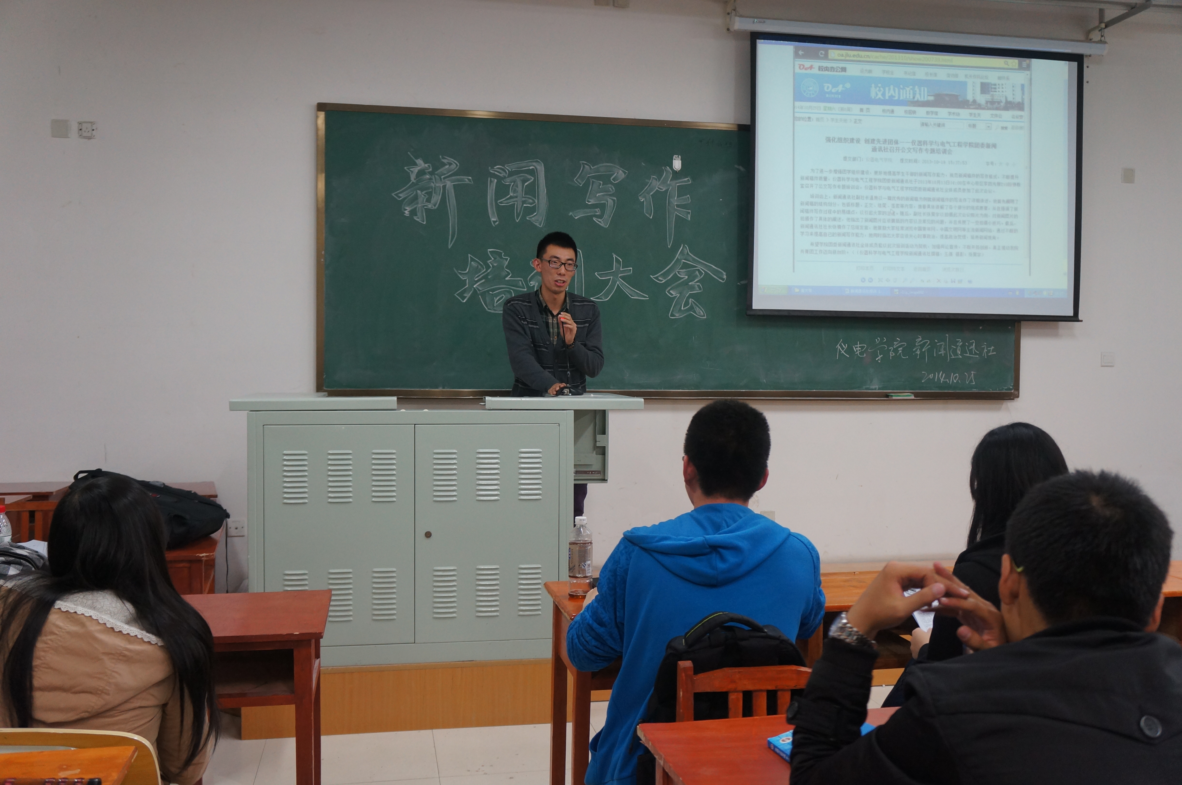 团委新闻通讯社于10月28日晚在中心校区李四光318室开展了新闻写作培训活动,学院团委新闻通讯社以及大一大二学生会全体成员参加了本次培训会。