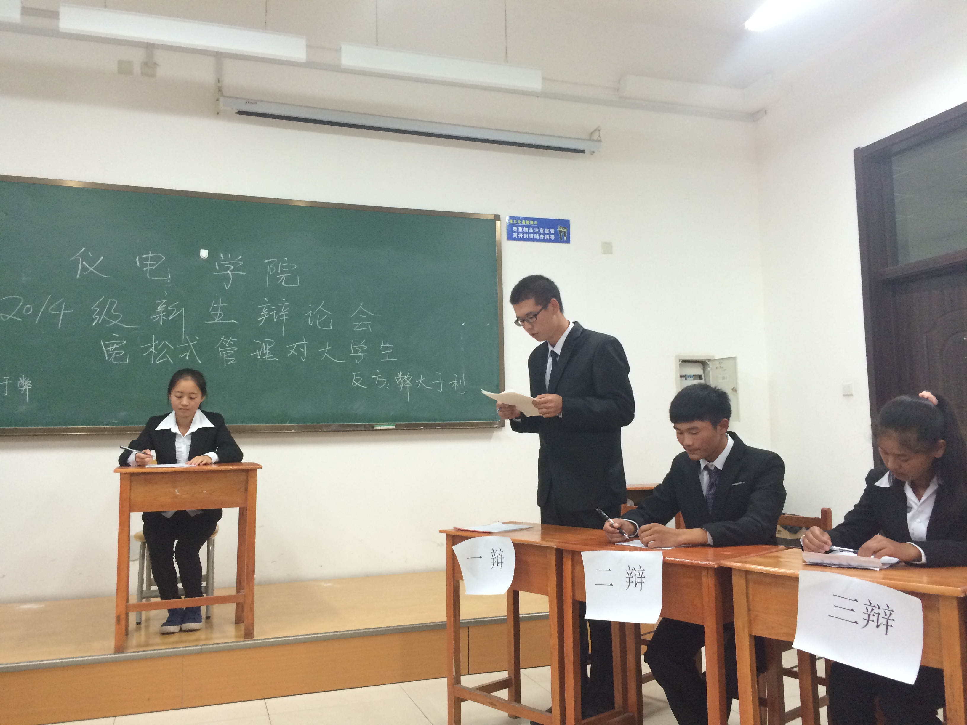 本次活动由Power Speaking口才辩论协会主要成员孙德立、侯洋等几位同学担任评委和主持。当天比赛的赛场气氛热烈紧张,双方辩手你来我往,侃侃而谈,场下观众激情澎湃,掌声连连响起。其中一场围绕“宽松式管理对于大学生成长利大于弊还是弊大于利”的辩论尤为精彩,在一辩立论阶段,各方一辩旁征博引,进行了激烈的交锋,博得了全场掌声。攻辩环节更是将全场气氛活跃起来,双方二三辨针锋相对,势均力敌,引得全场叫好。在最扣人心弦的自由辩论环节再次将比赛推向高潮,现场气氛持续升温、精彩不停,掌声不断。双方队伍乘风破浪、气势如虹、妙语连珠。最后四辩的精彩总结为全场划上了圆满句号。