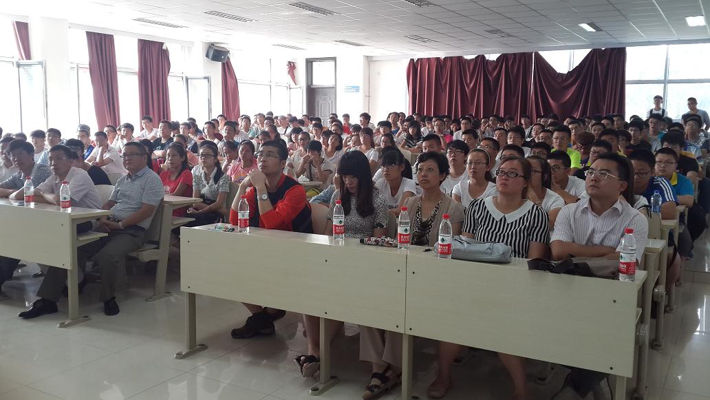 会上,林君院长首先为大家介绍了学院的总体情况,他从学院历史发展、学科建设、师资人员、专业设置、学科特色、人才培养、科研成果等方面进行了简要的介绍,他还鼓励2014级新生“勤学成才”,力争用四年的勤奋努力和拼搏进取,力争取得优异成绩回报家庭和社会,努力为祖国的建设和发展贡献力量。随后,副院长陈祖斌教授为新生同学们介绍了学院本科教学、实践教学、创新能力培养等方面的情况,他希望新同学们在今后的学习中能努力做到“知行合一”,加强创造性思维的培养和训练,努力拓展视野,培养“见识、常识、胆识”。领导老师们还就新生在学习、生活等方面提出了期望。老师们的平易近人、亲切随和让2014级新生们感到温暖与关怀,同学们一边听一边积极思考,不时露出会心的笑容并报以热烈的掌声,2014级新生大学校园的“第一课”在轻松、愉快的氛围中圆满结束。