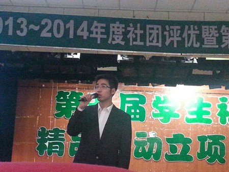 由科技协会2012级代表李峙雄同学作为活动负责人进行现场答辩演讲。比赛中,几位候选社团的负责人依次上台进行答辩,他们精彩的PPT展示和生动的讲解赢得了在场观众的热烈掌声,也获得了评委们的声声赞许。在学术类候选活动中,最引人注目的当属我院大学生科技协会举办的电子科学技术培训,李峙雄同学对电子科技协会相关活动进行了详尽的解说。他说,“电子科技协会培训对电子爱好者来说意义重大,它有助于推广电子技术、加强创新实践、提升科技氛围、广纳同道英才”,赢得了观众们经久不息的掌声。最后,电子科技技术培训活动不负众望顺利入围精品活动立项决赛。