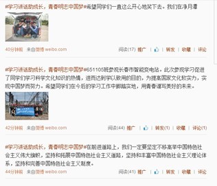 本次微博学习旨在引导青年学生更好地明确人生目标,追求自己的梦想。希望651105班的同学们能以此次活动为契机,在努力学习科学文化知识的同时,不断加强自身思想道德素养,为实现中国梦的伟大事业贡献自己的力量。(色情短剧